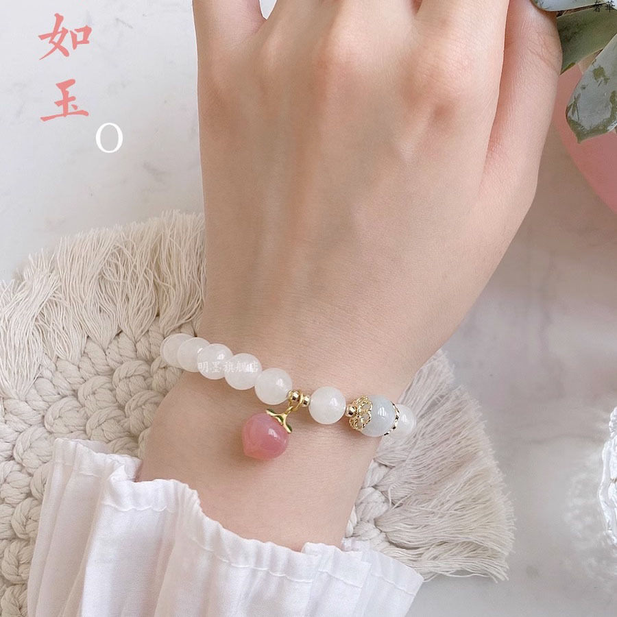(B238802)天然和田玉手串女單圈簡約設計南紅水蜜桃轉運珠瑪瑙手鍊母親節禮