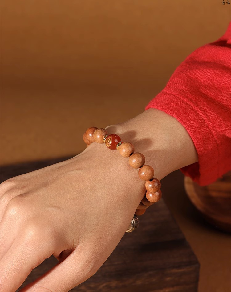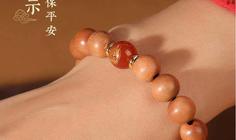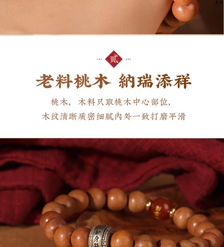 (B238817)生肖桃木瑪瑙手串男女復古手鍊文玩手串簡約兔年飾品本命年禮物"飾品批發"