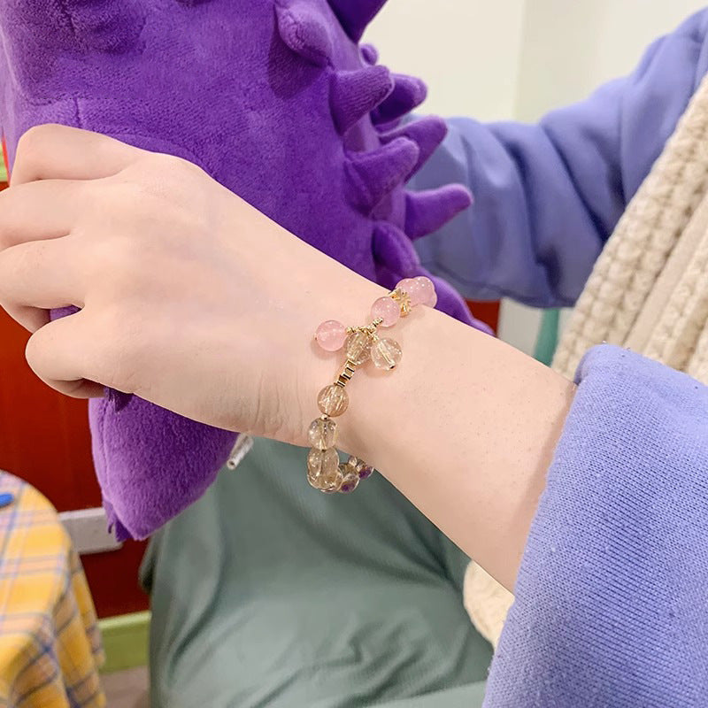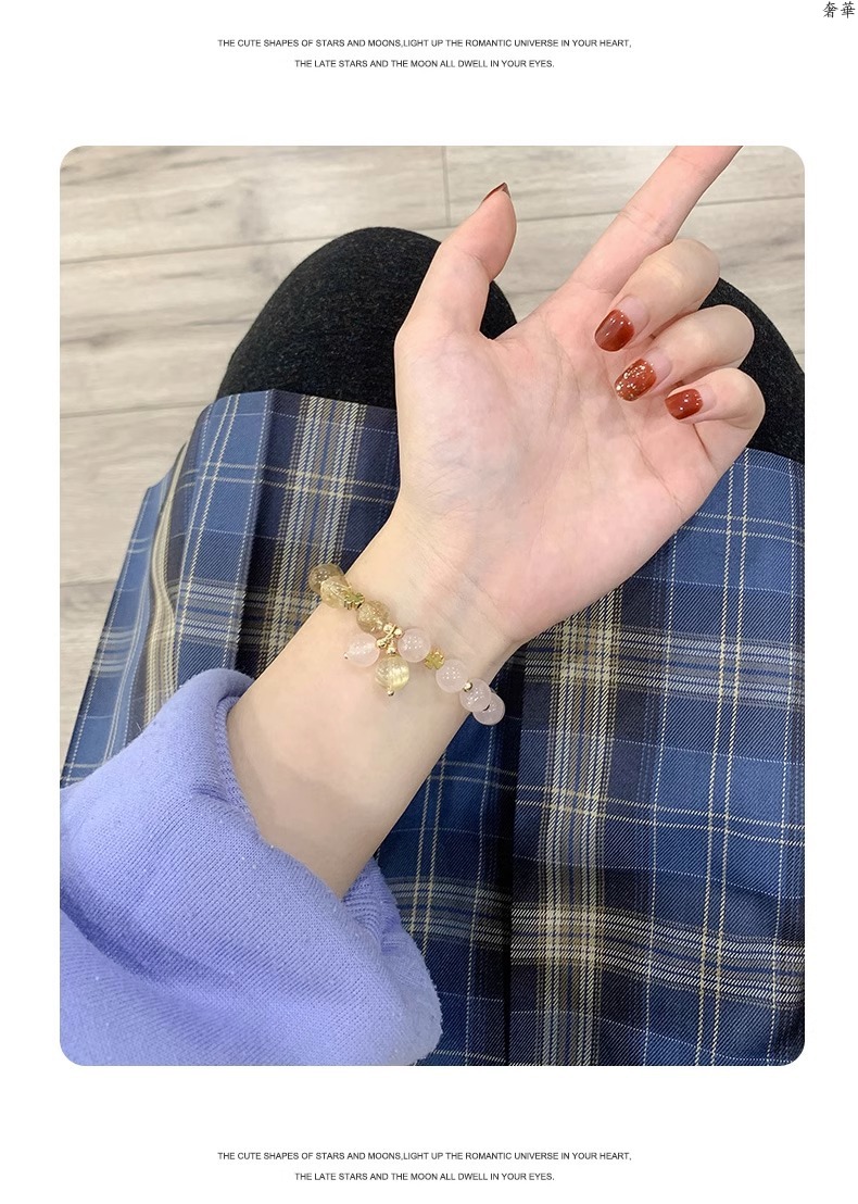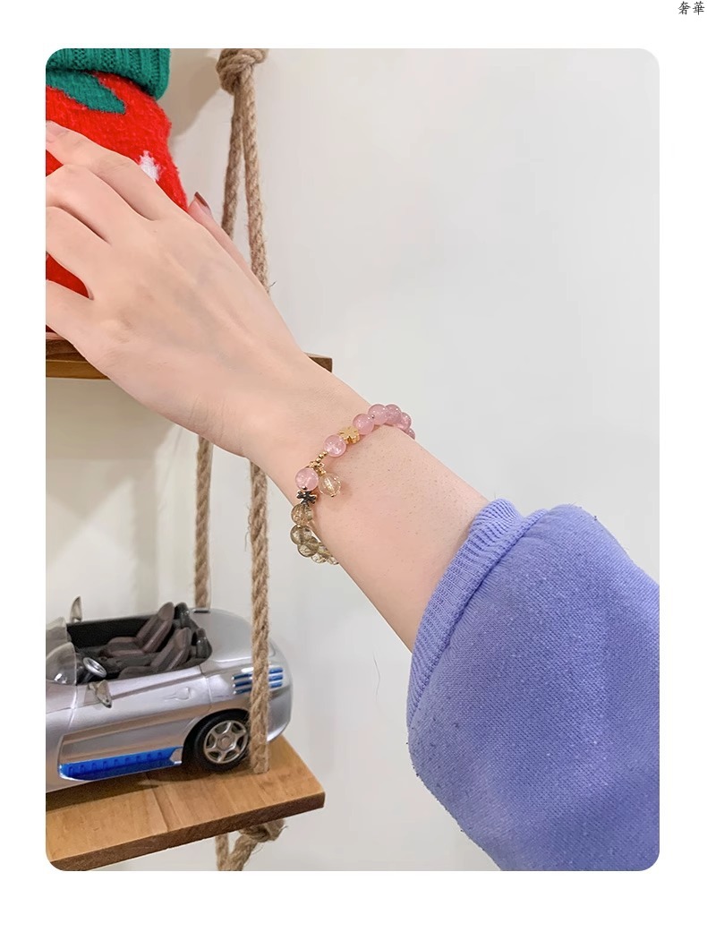 (B2383019)天然金髮晶水晶手鍊女粉水晶手串ins送閨蜜生日禮物小眾高級感