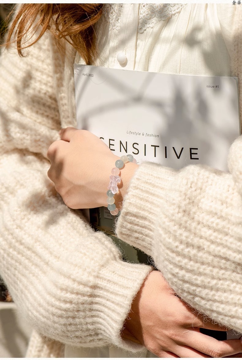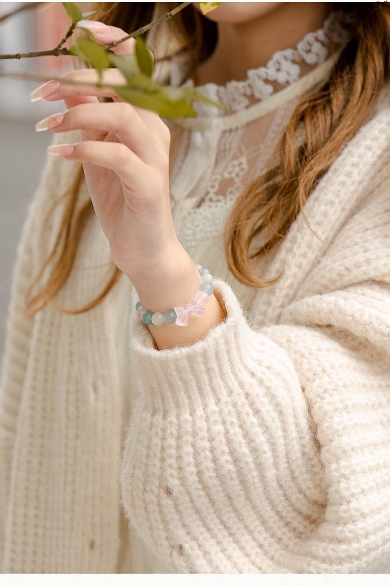 (B238305)水晶手鍊女學生小清新ins紫水晶蝴蝶結海藍寶手串飾品女友禮物