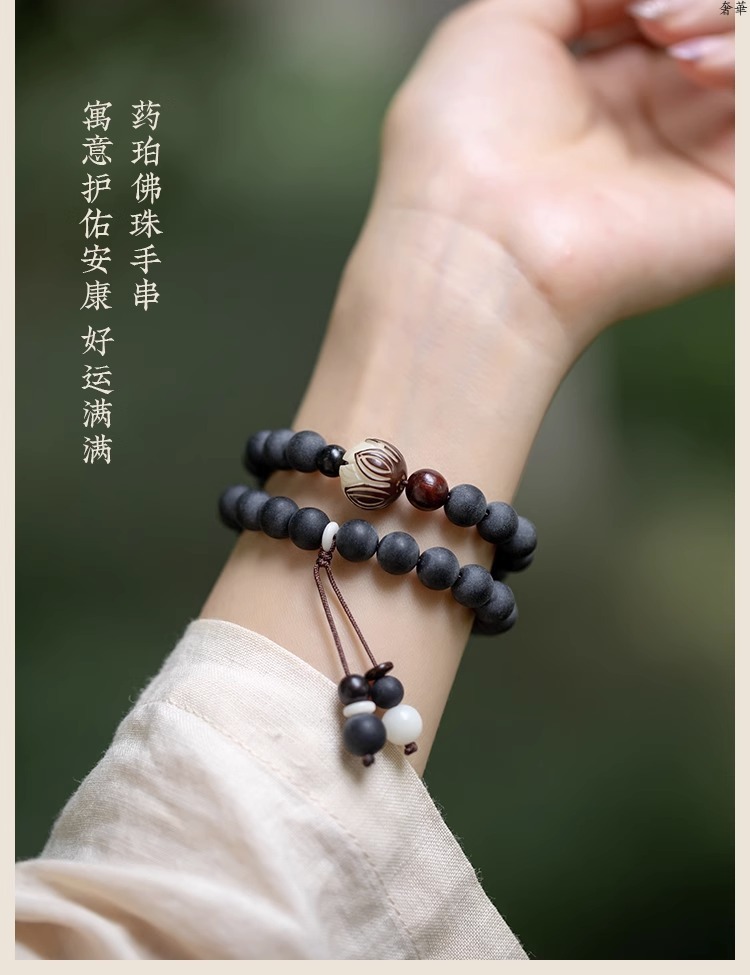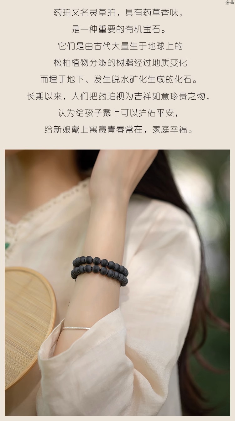 (B238302)復古藥珀手鍊女森系學生手鍊情侶佛珠手串檀香手串天然中國風佛珠
