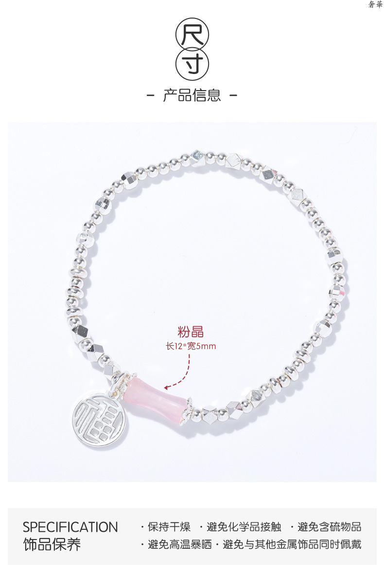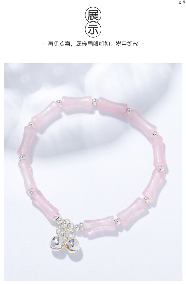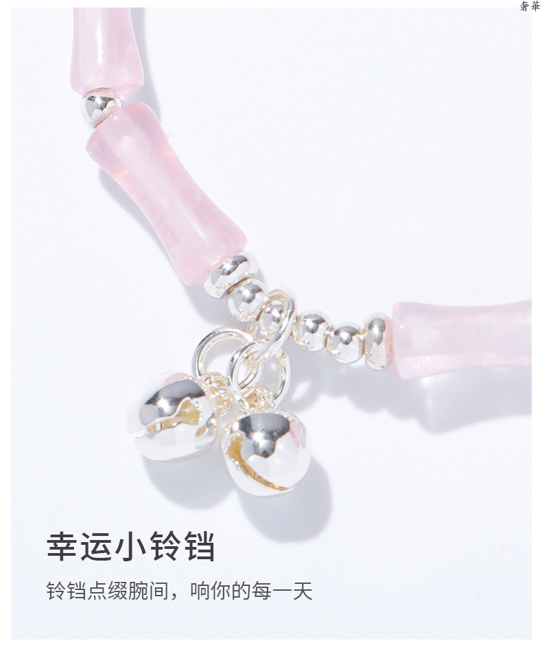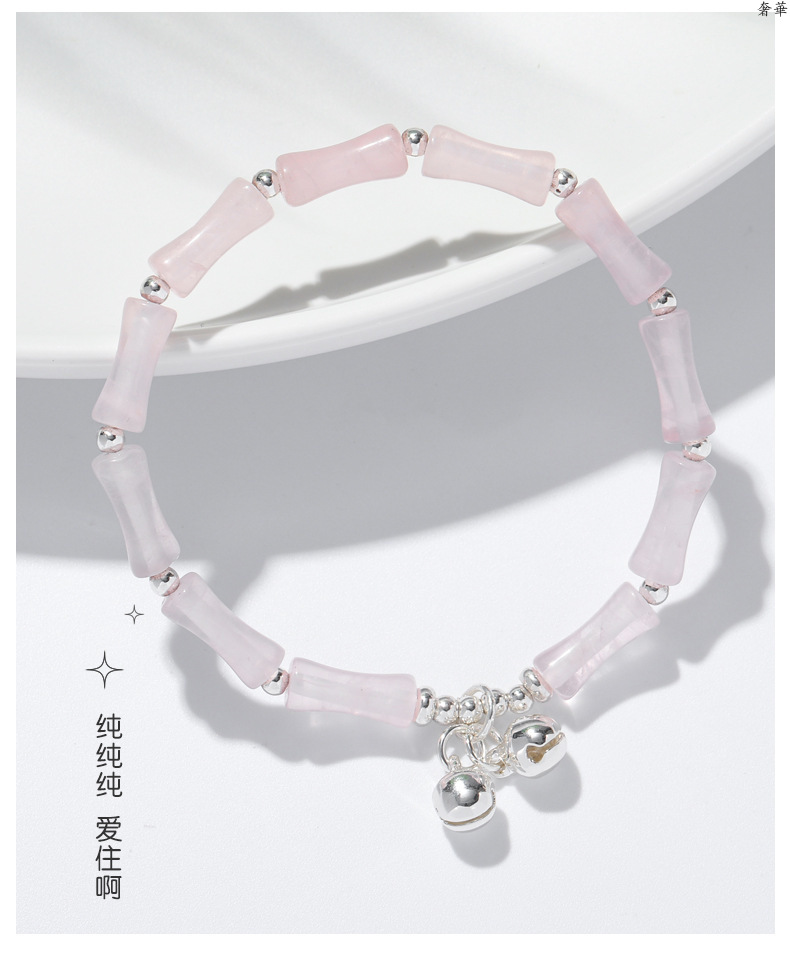(B2383013)天然粉晶竹節疊戴式水晶手鍊福牌鈴鐺串珠手鍊新中式國風復古手飾