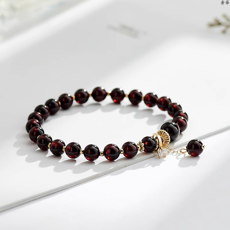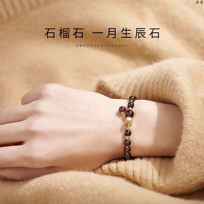 (B238326)夏季新款天然石榴石手鍊女ins小眾設計水晶手串飾品女友生日禮物