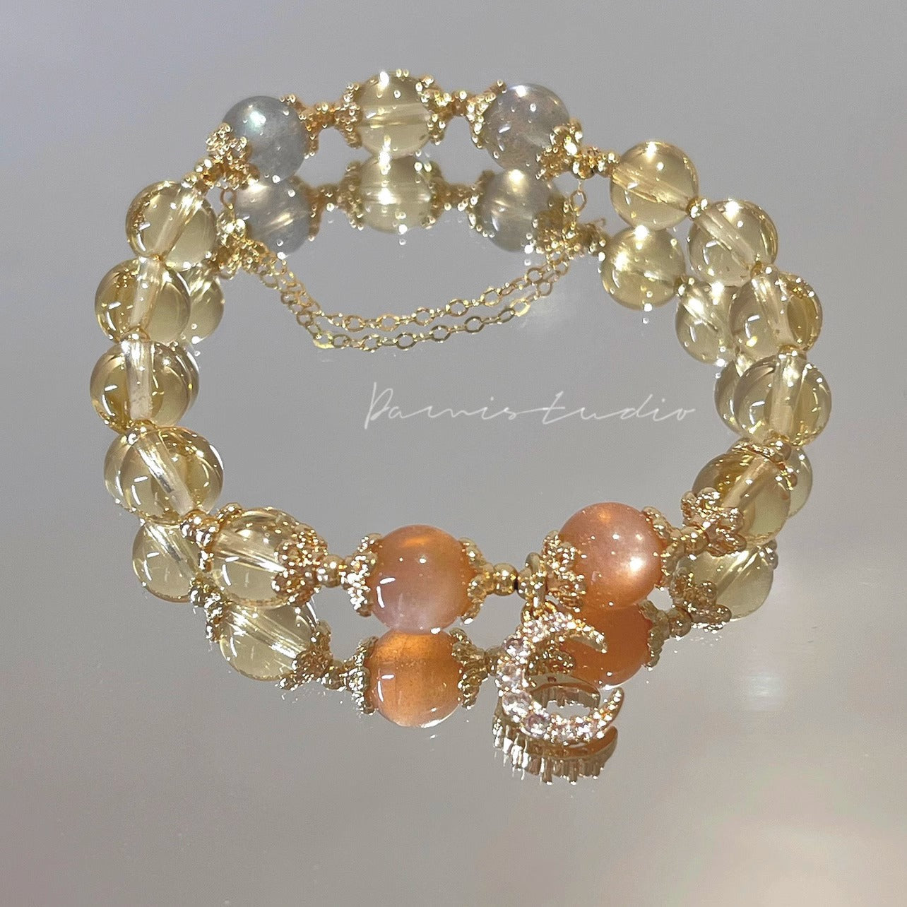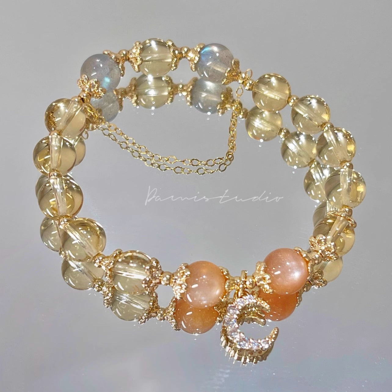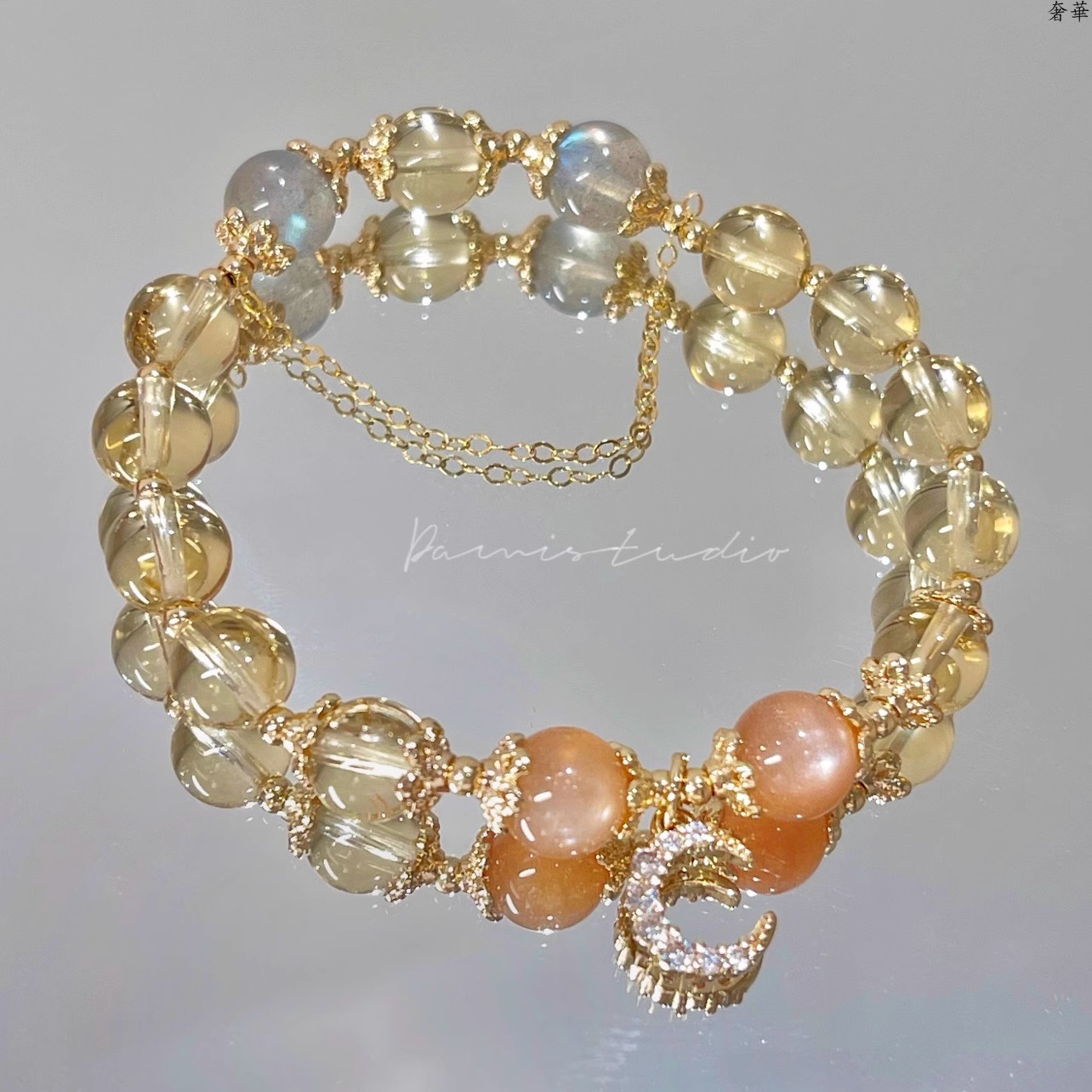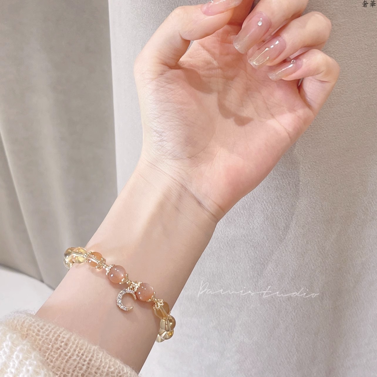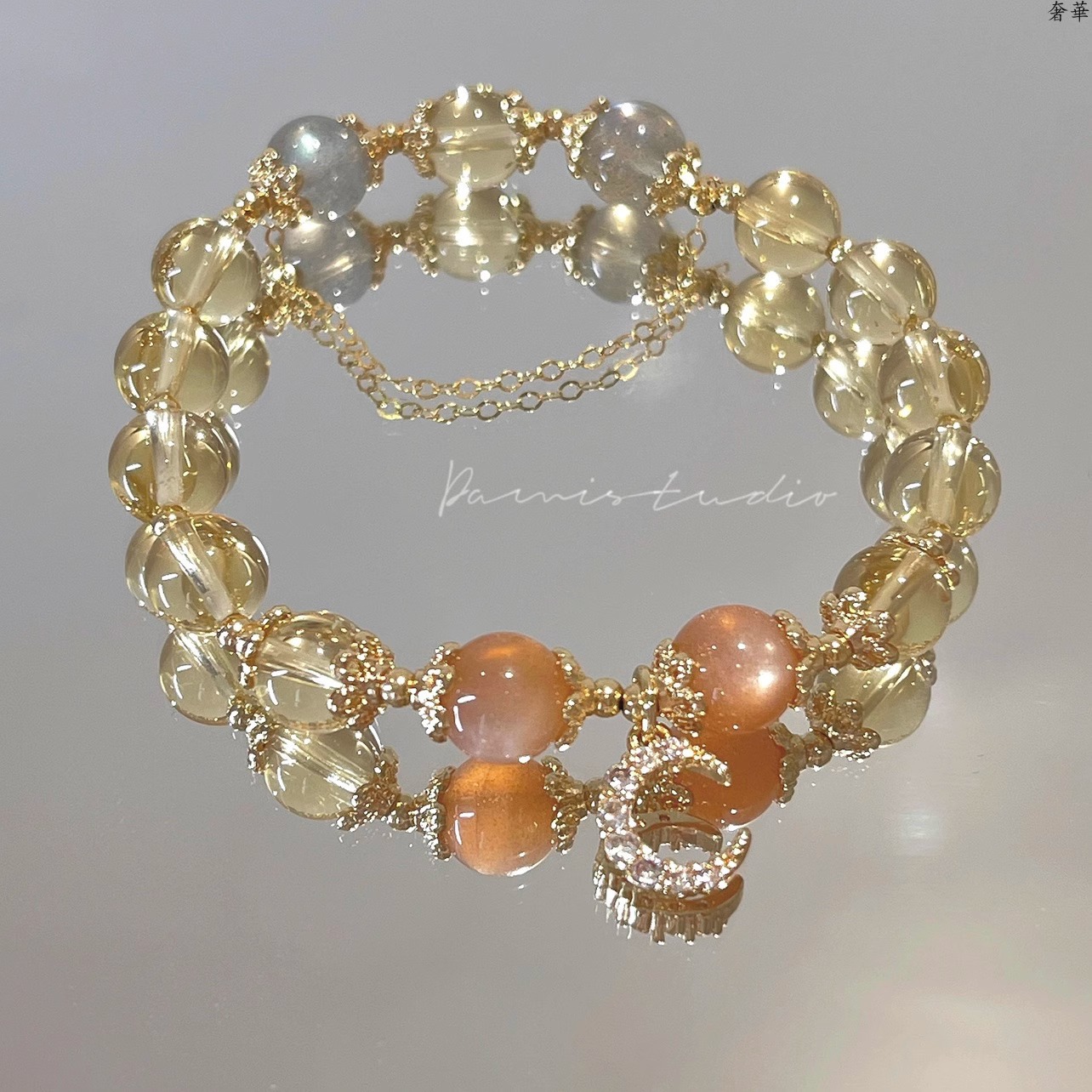 (B238323)天然黃水晶手鍊月光石金太陽石14k包金發財水晶手串女生手飾品