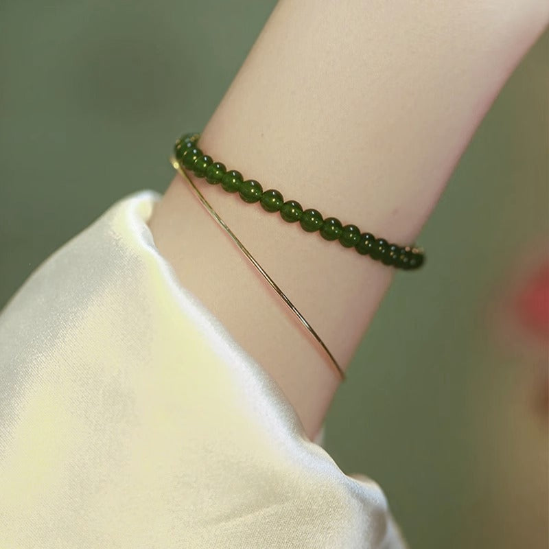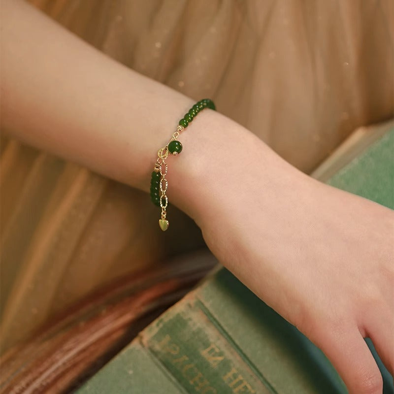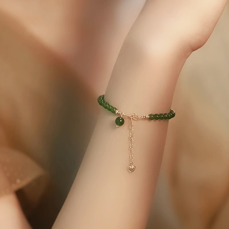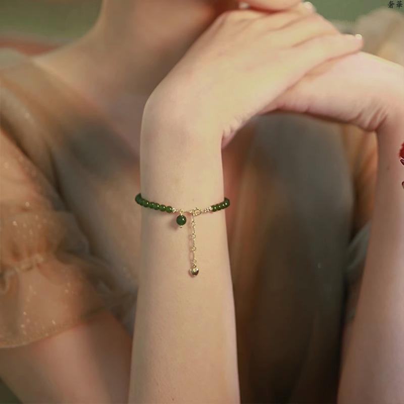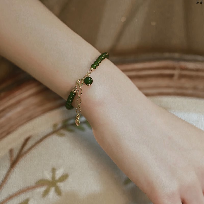 (B238339)「綠籬」天然綠玉髓手鍊女款ins小眾顯白復古綠葡萄手串地攤飾品(飾品批發)