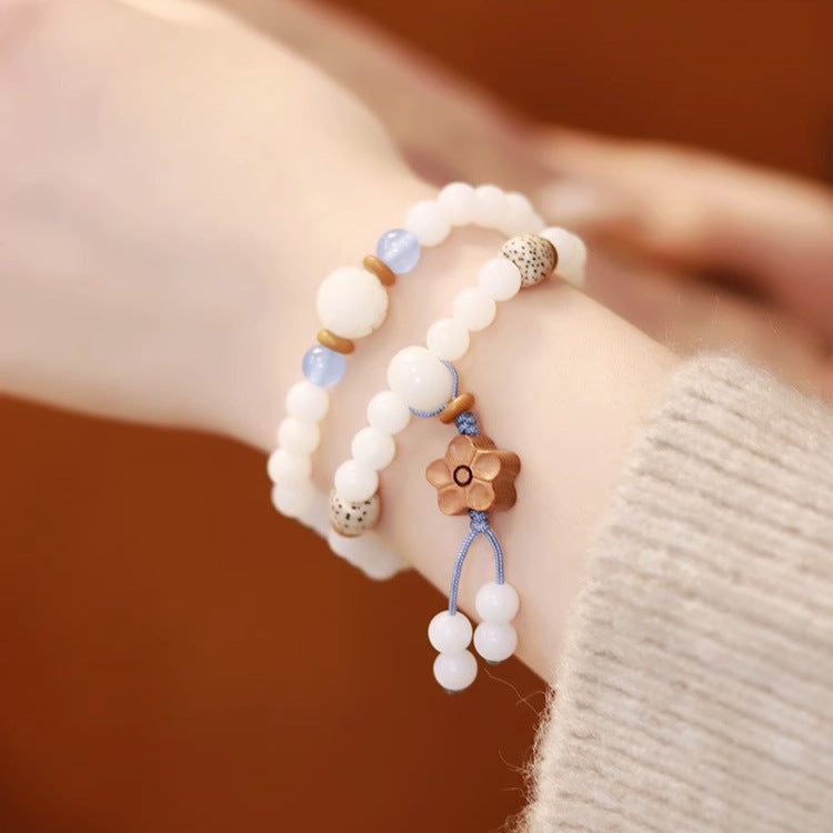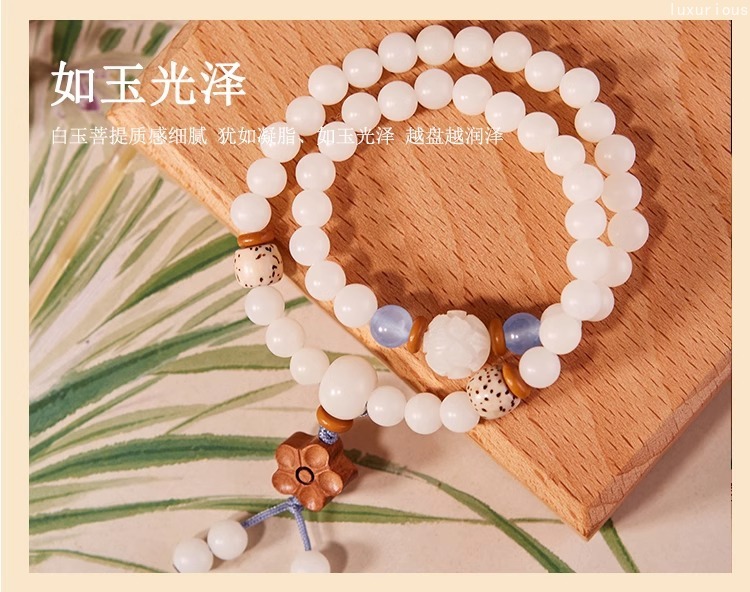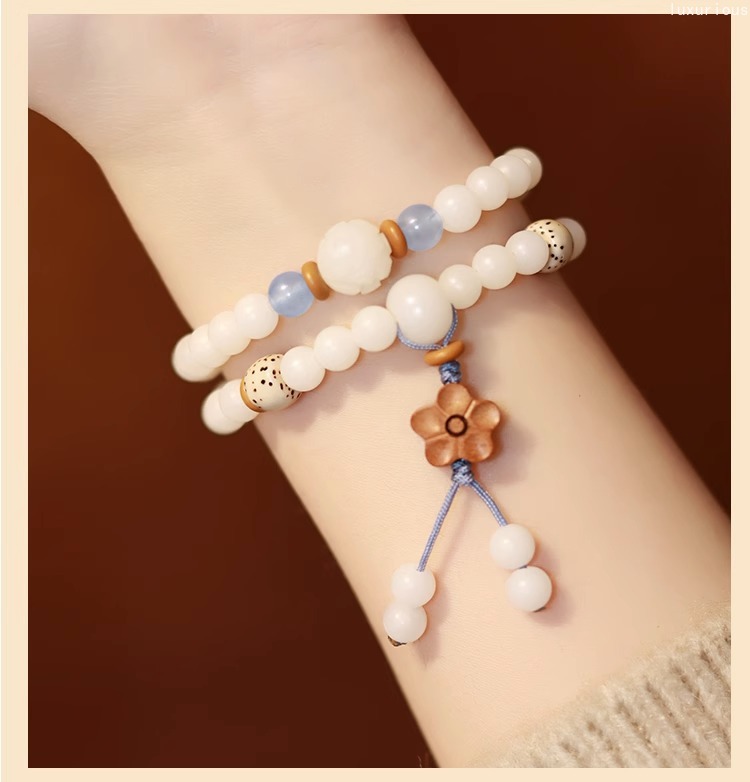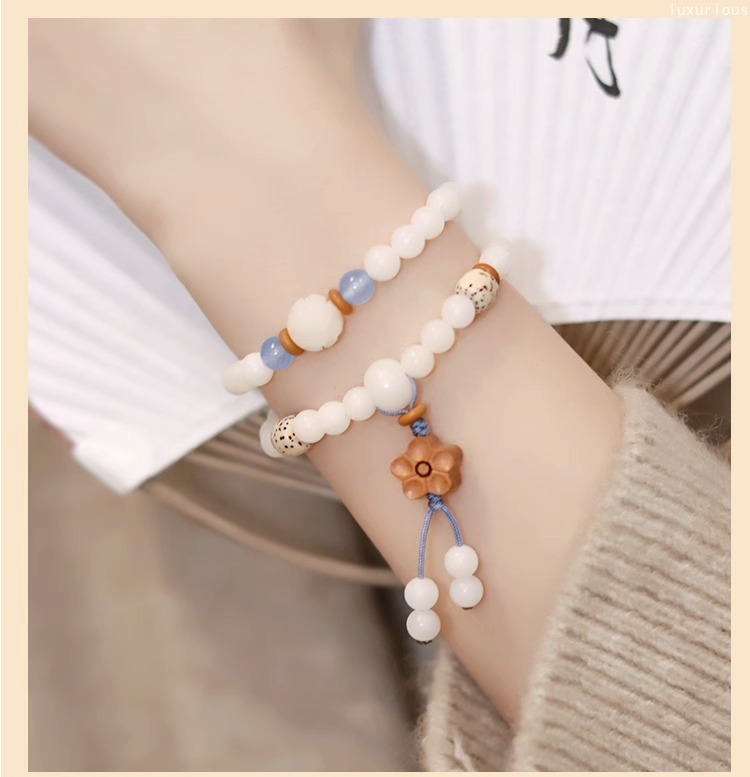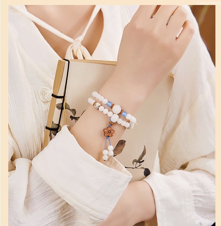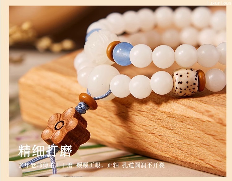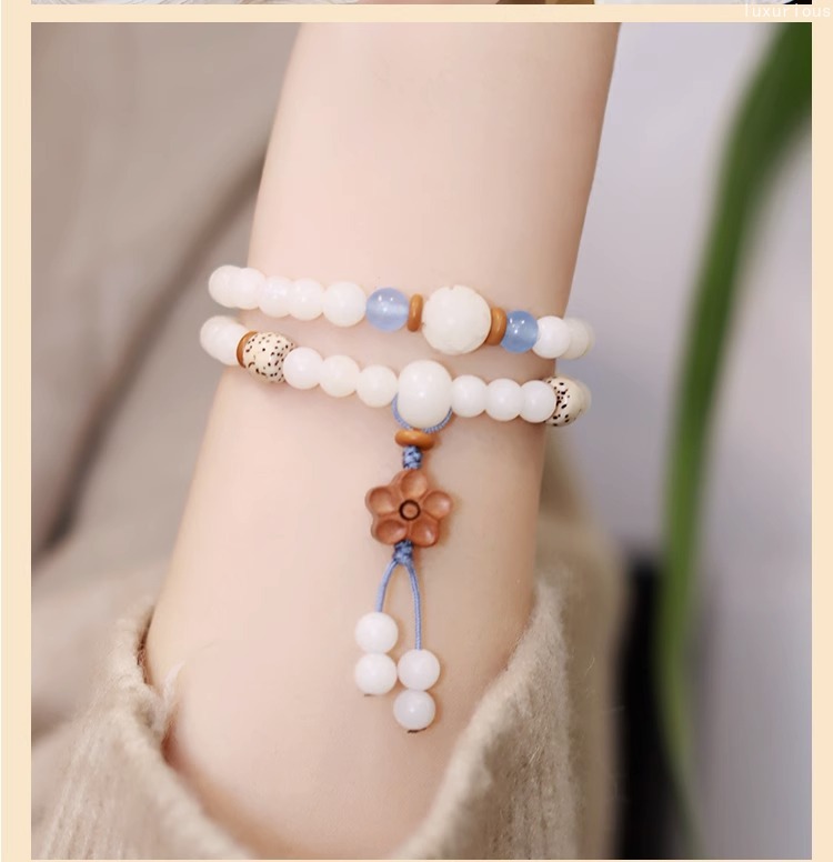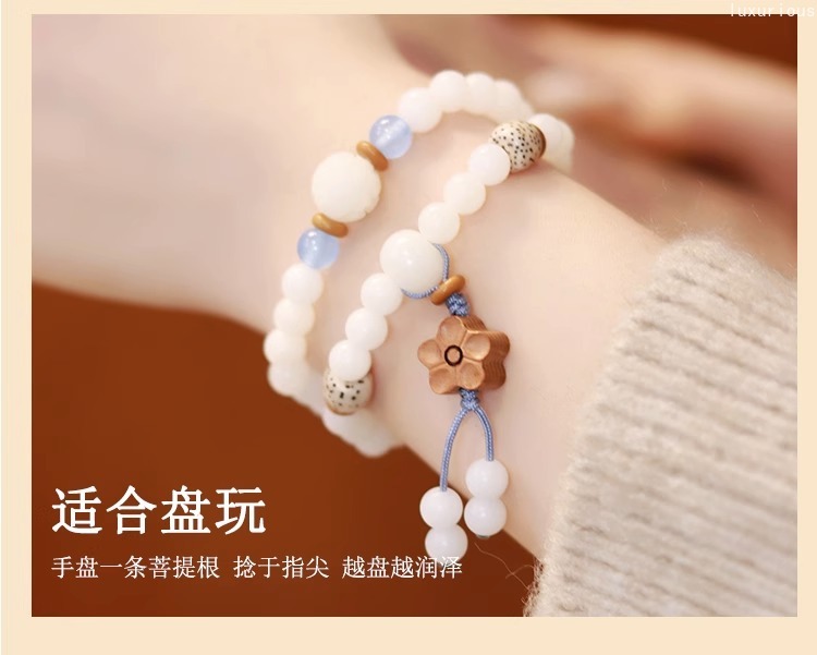 (B2381205)《白夜藍星》天然白玉菩提手串文玩可愛新中式首飾女士款七夕禮物"飾品批發"