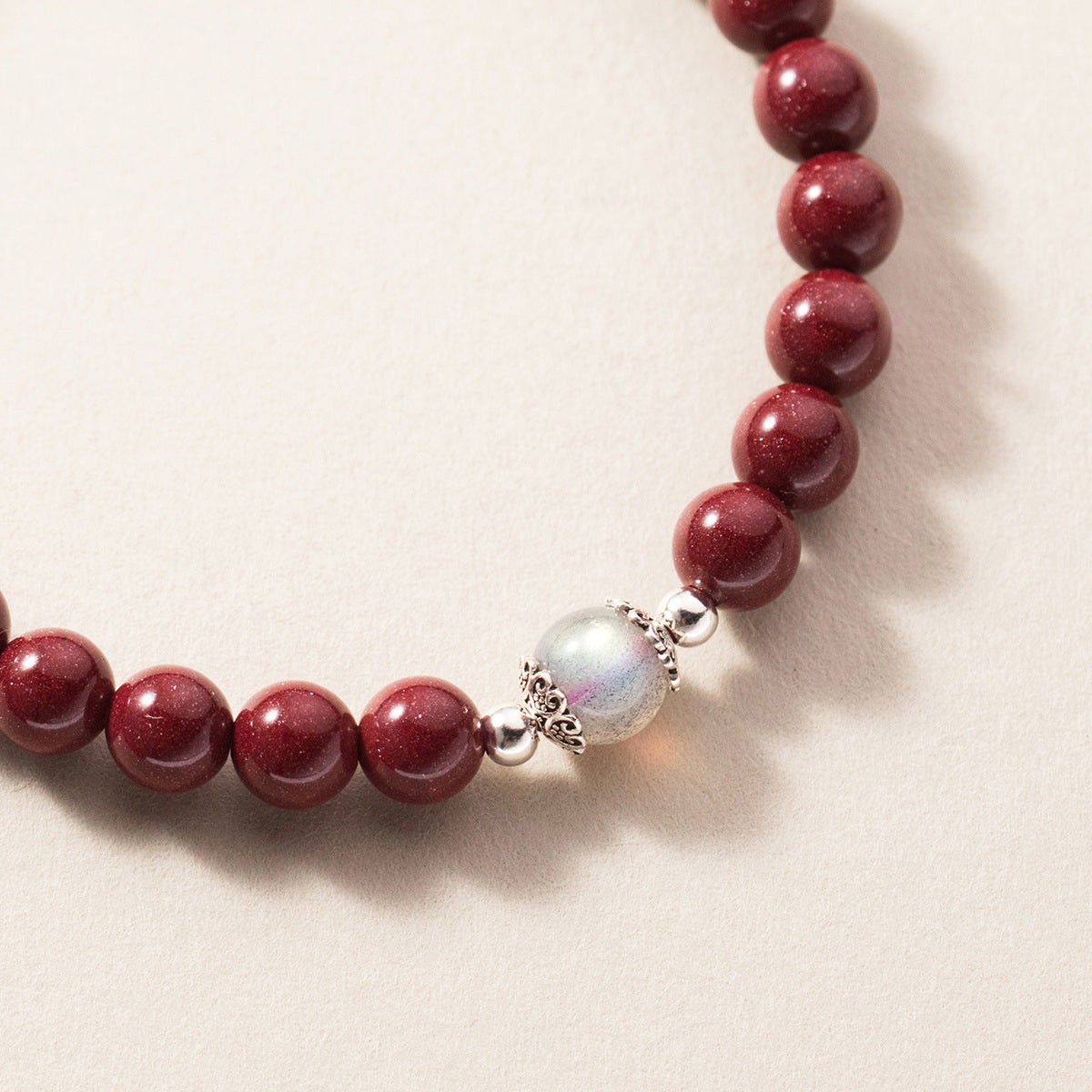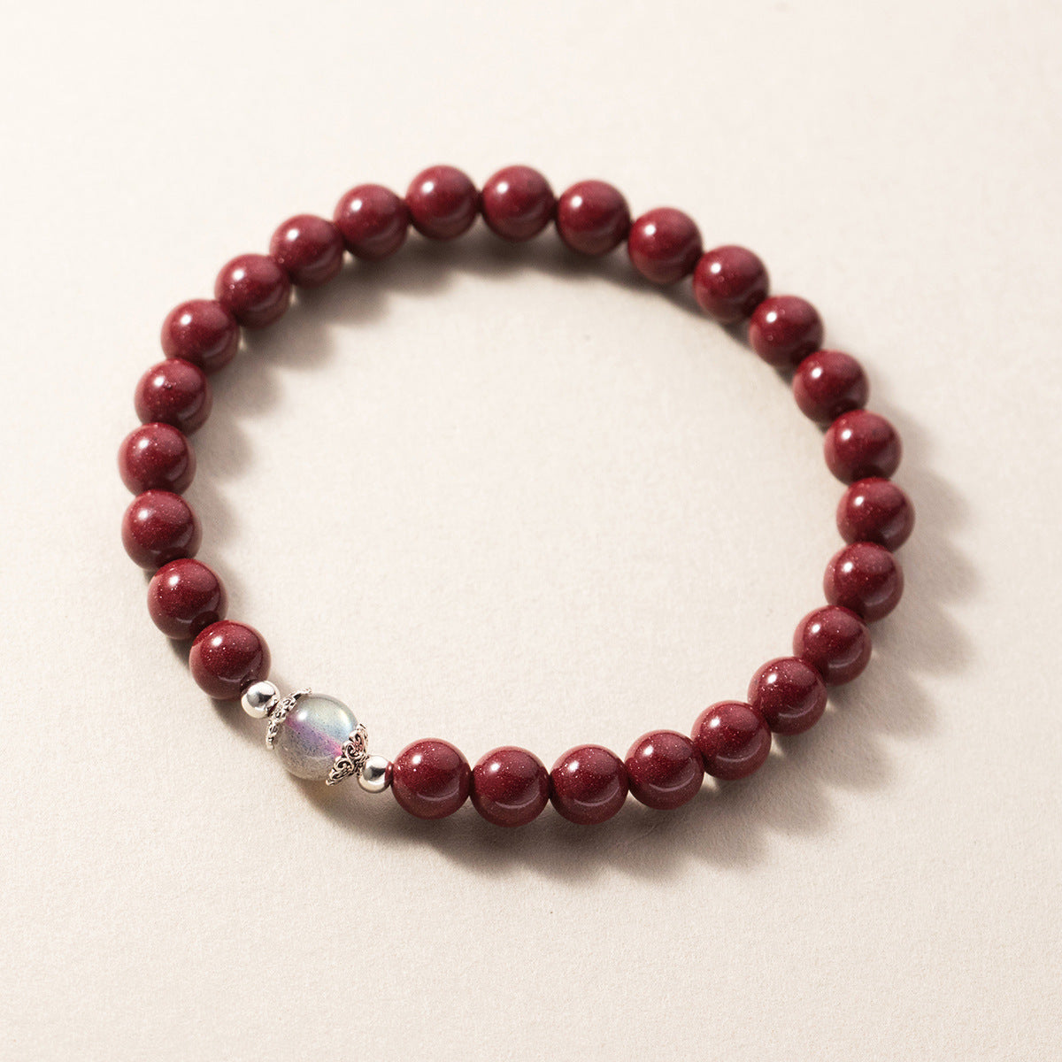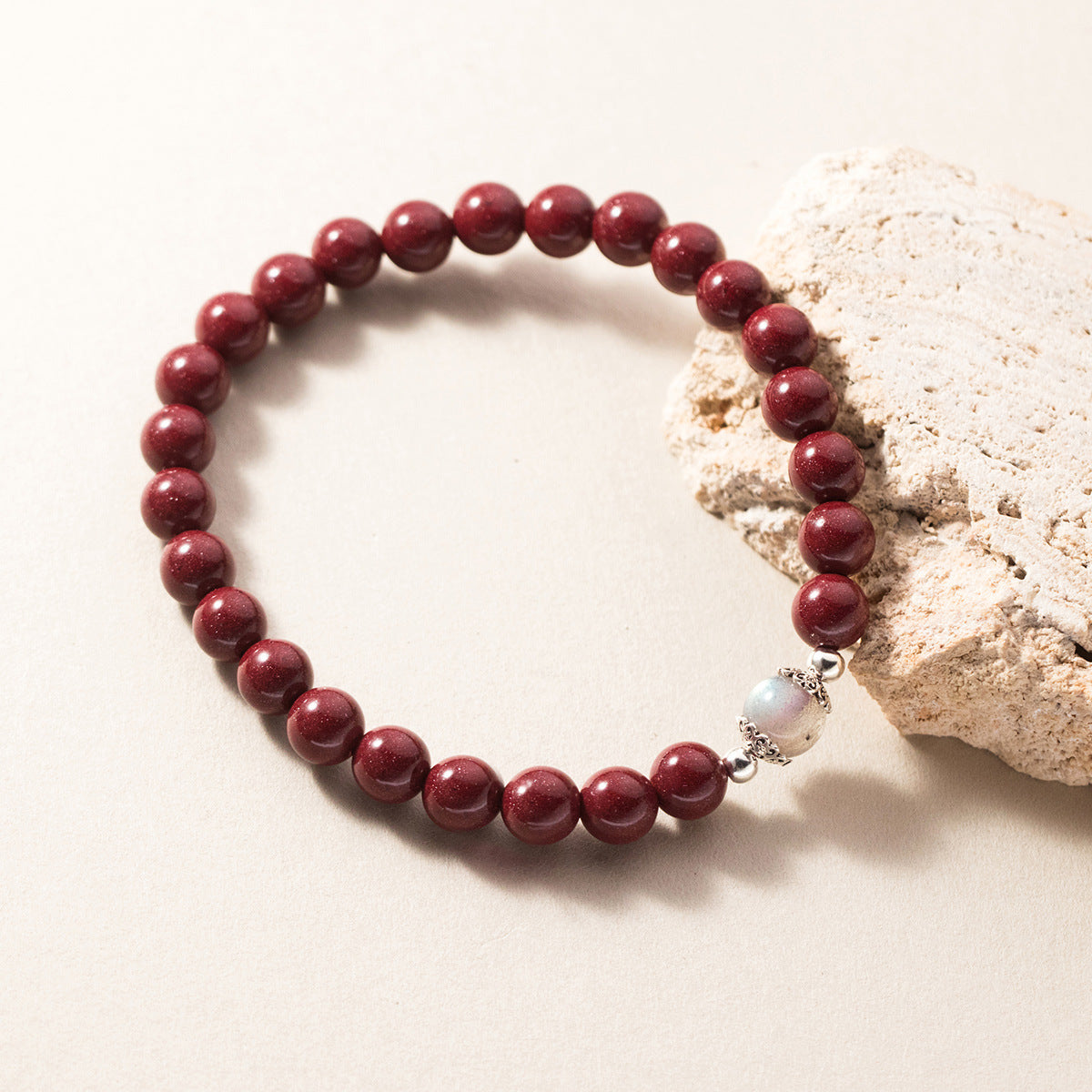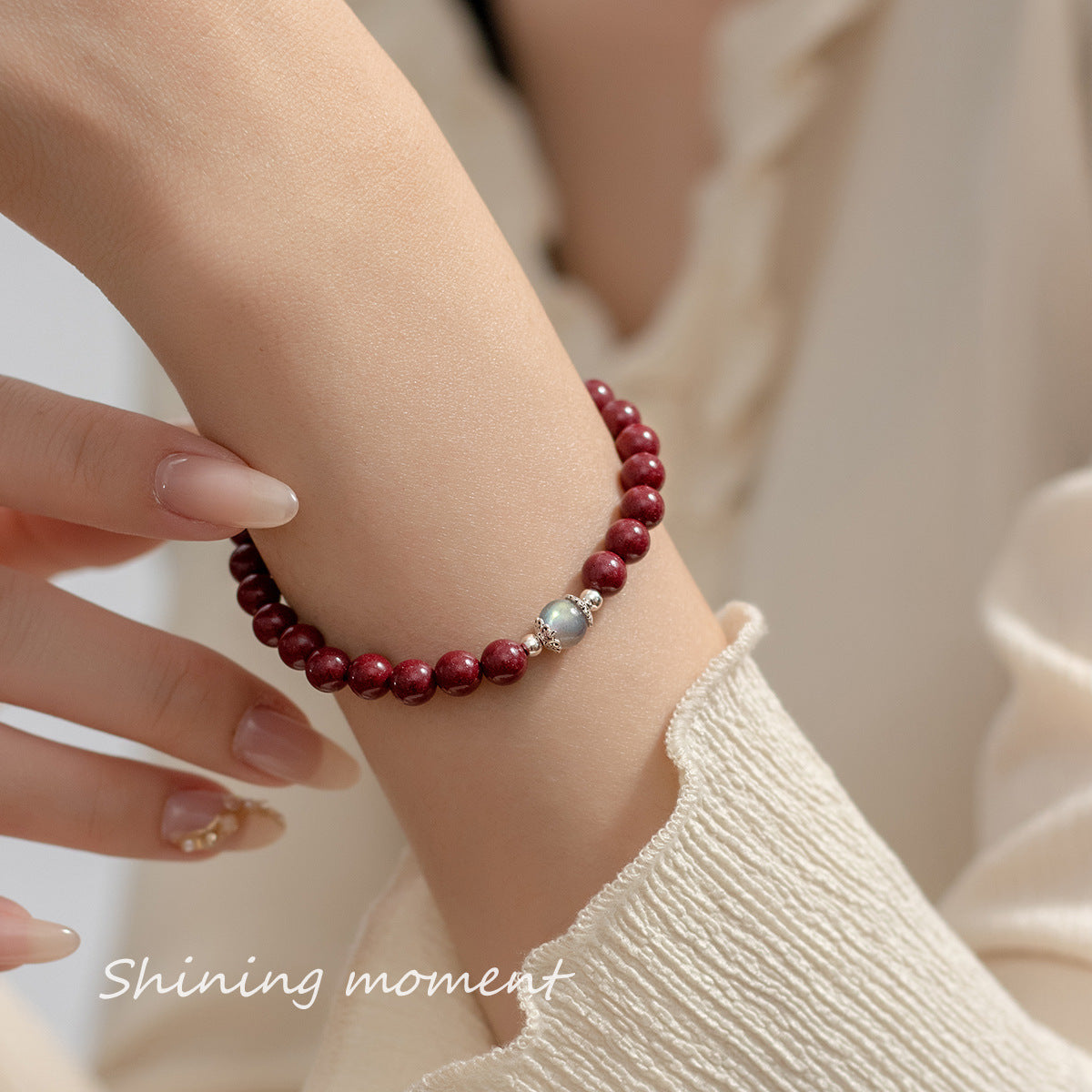 (Z2382254)S925純銀硃砂石光珠手鍊國風設計感月光石手飾品女S6454"飾品批發"