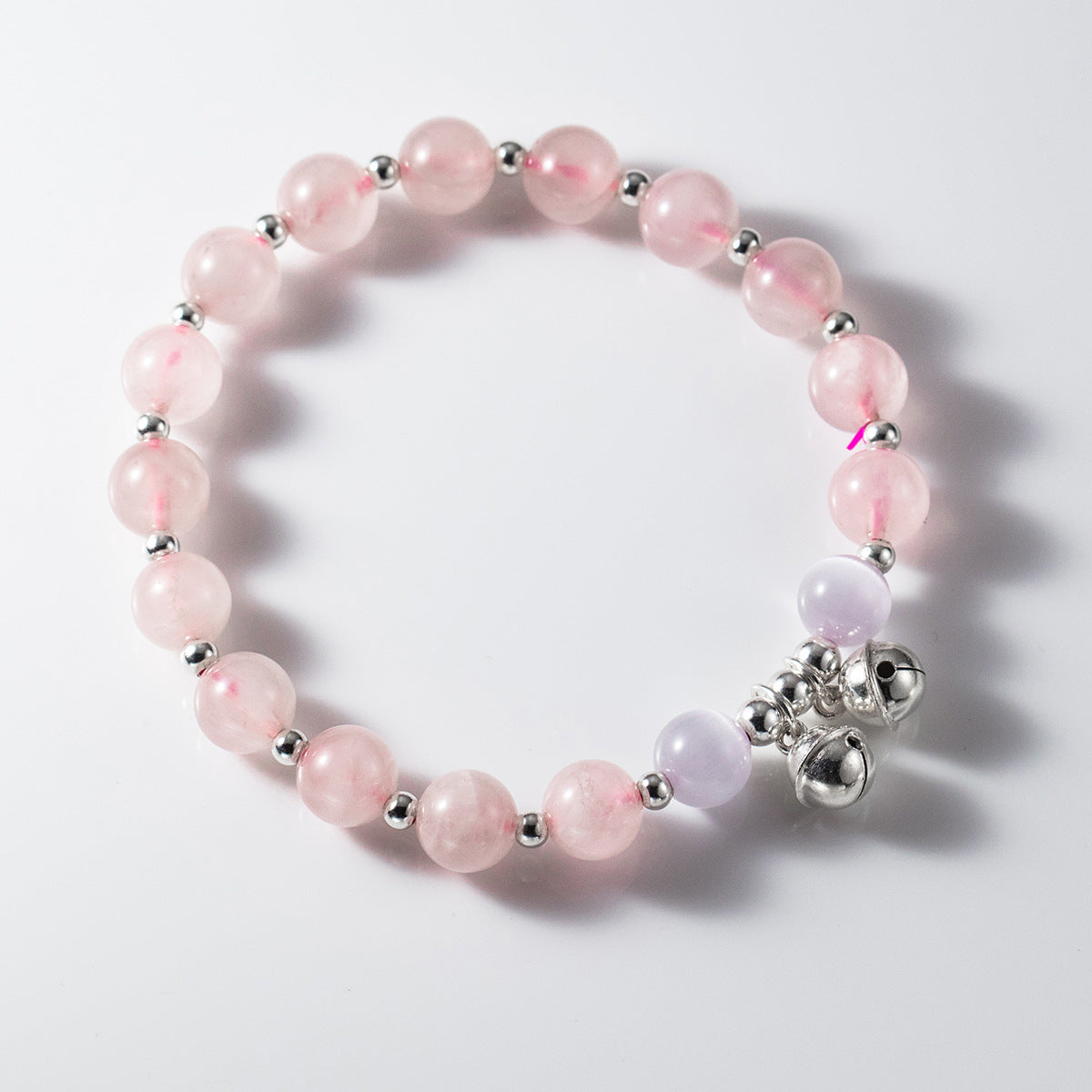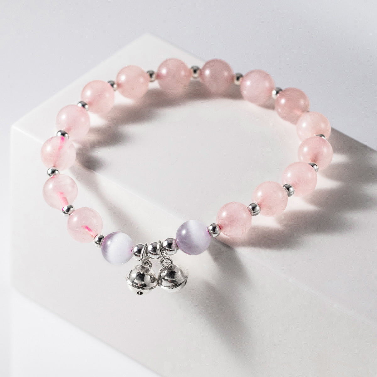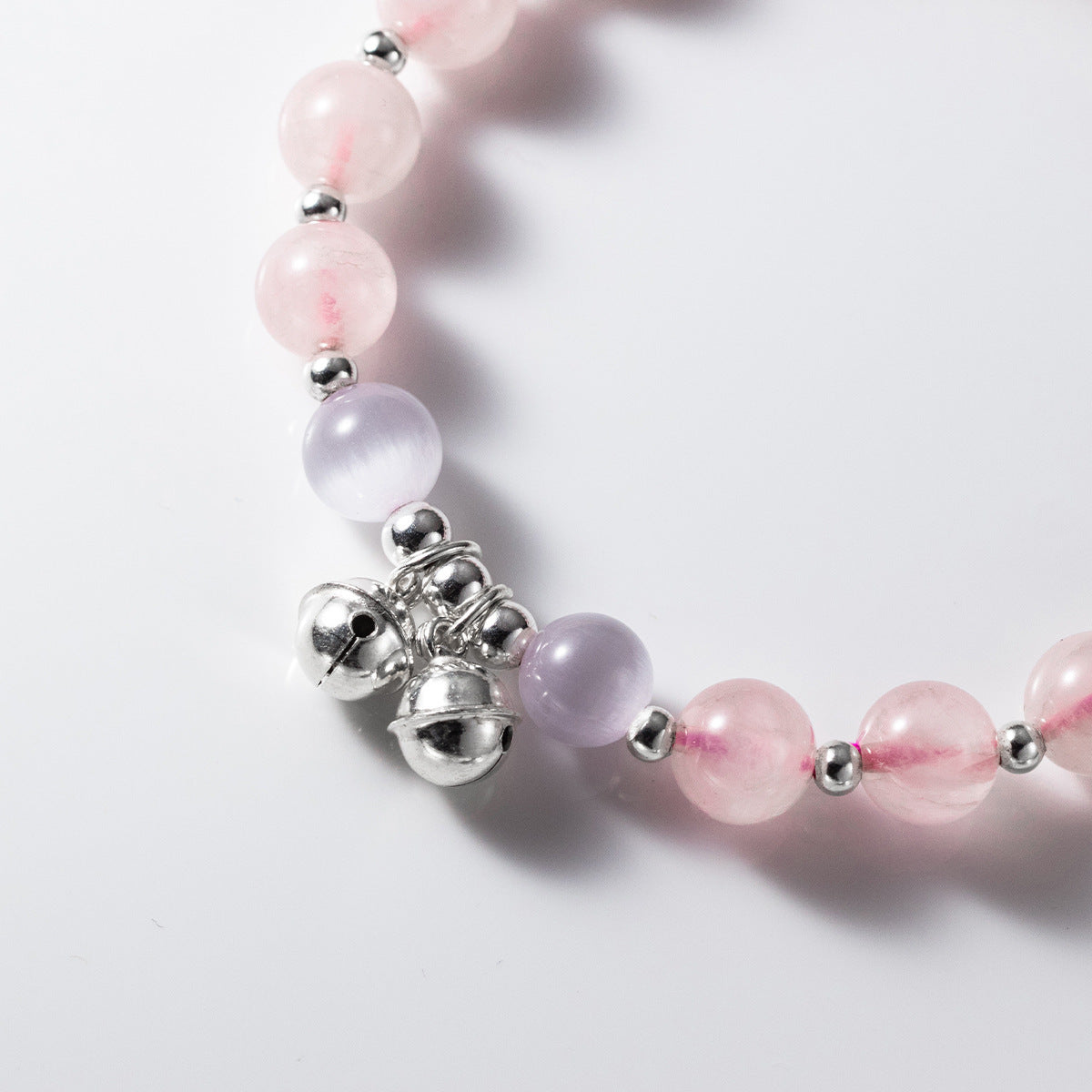 (Z2382247)S925C純銀粉晶鈴鐺合成貓眼石手鍊ins風甜美手飾品女S6507"飾品批發"