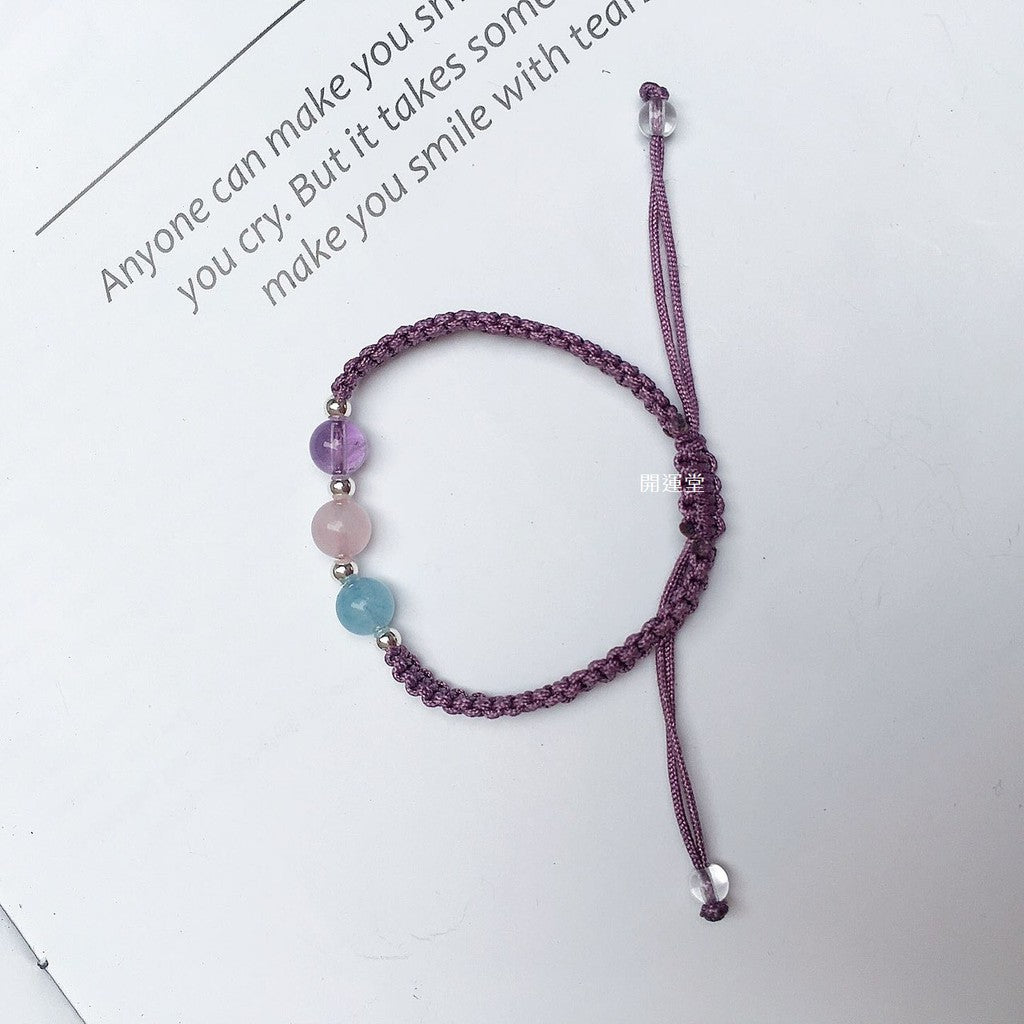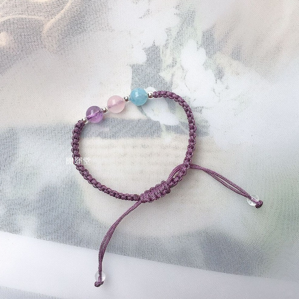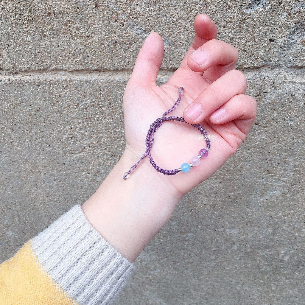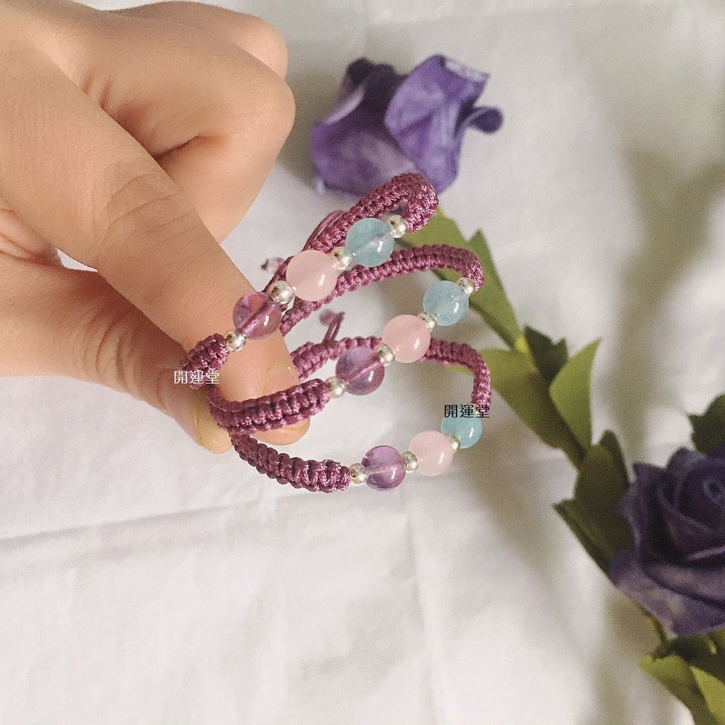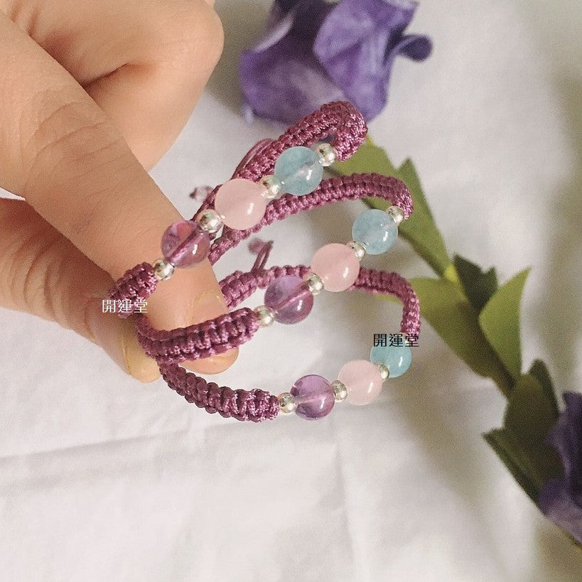 🔥現貨🔥幼童、大人親子款925純銀水晶編織繩小孩兒童款水晶平安扣手鍊伸縮繩款紫水晶粉水晶白水晶黑曜石海藍寶小朋友手鍊