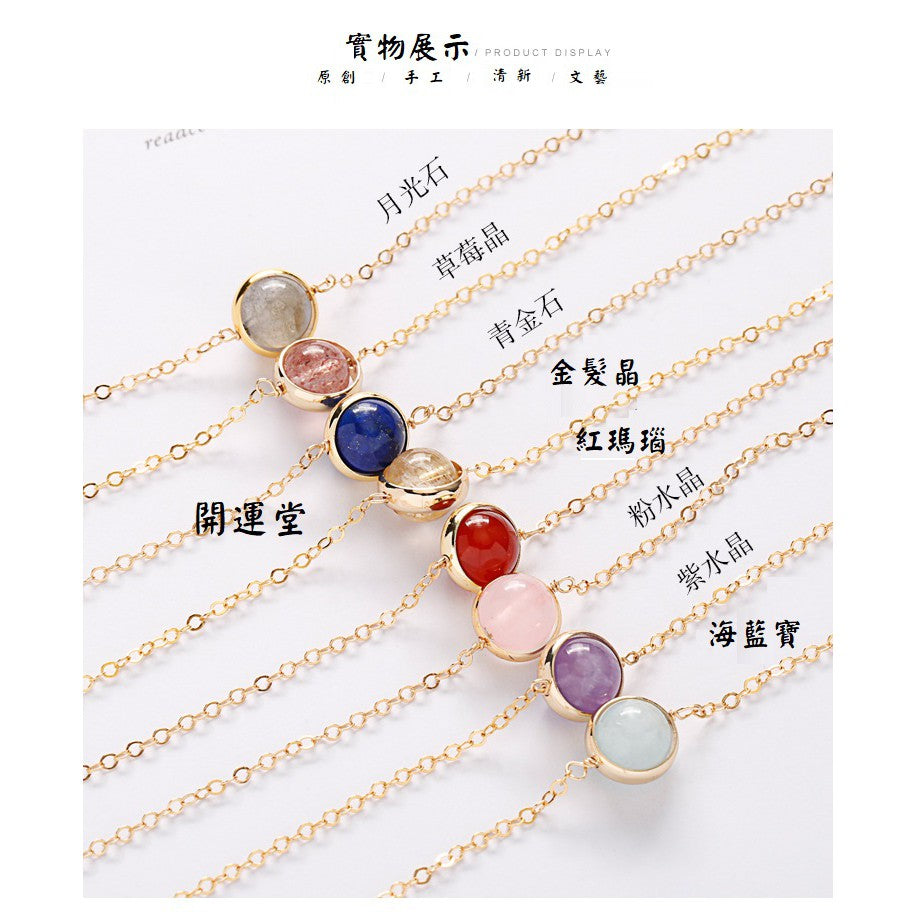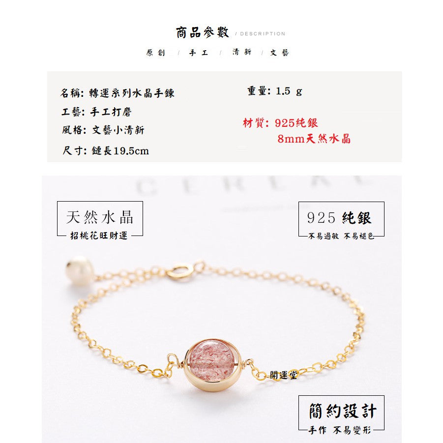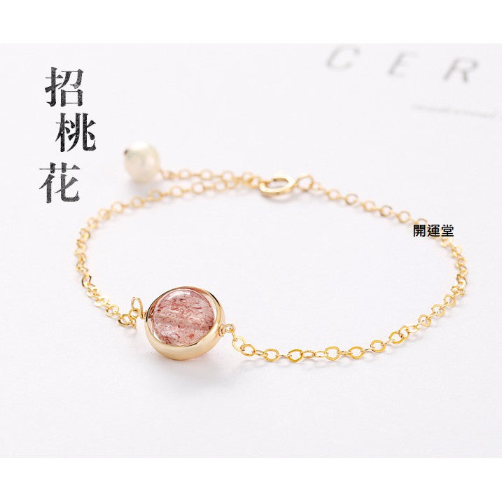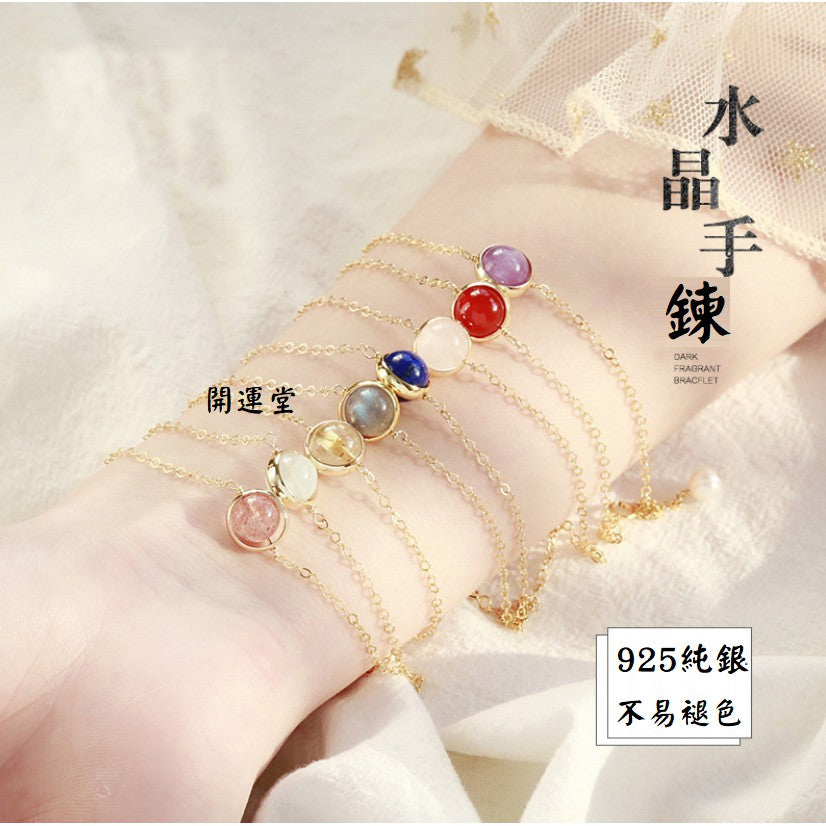 🔥現貨🔥925純銀鍍金月光石草莓晶: 正桃花多款水晶手鍊紅瑪瑙粉水晶金髮晶紫水晶海藍寶手鍊