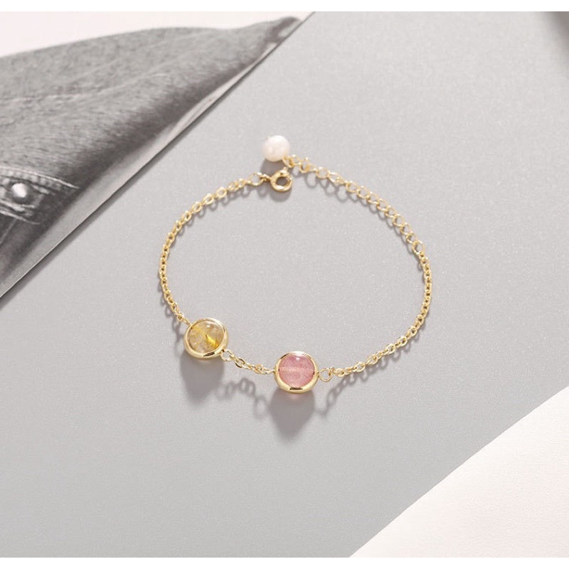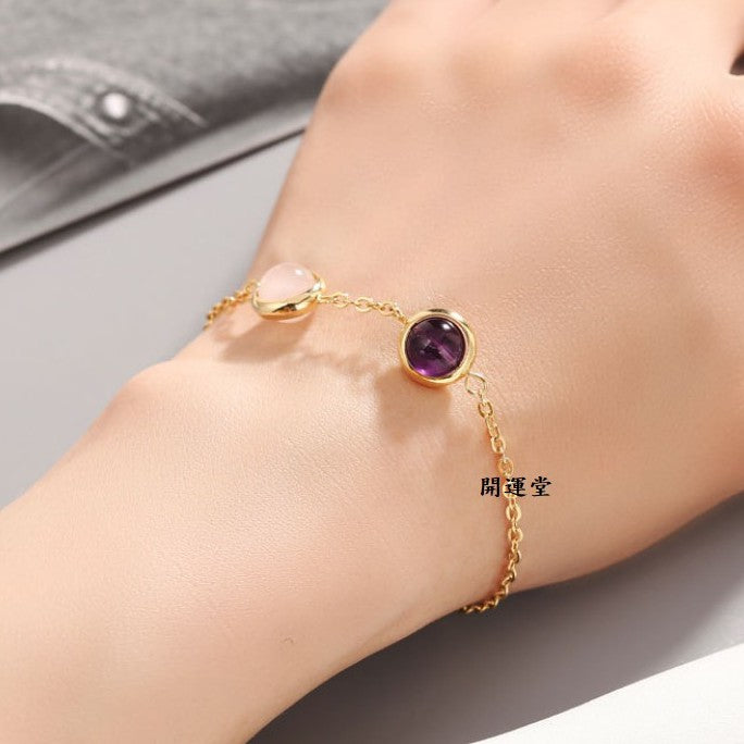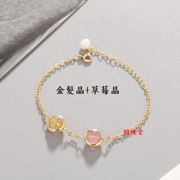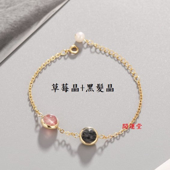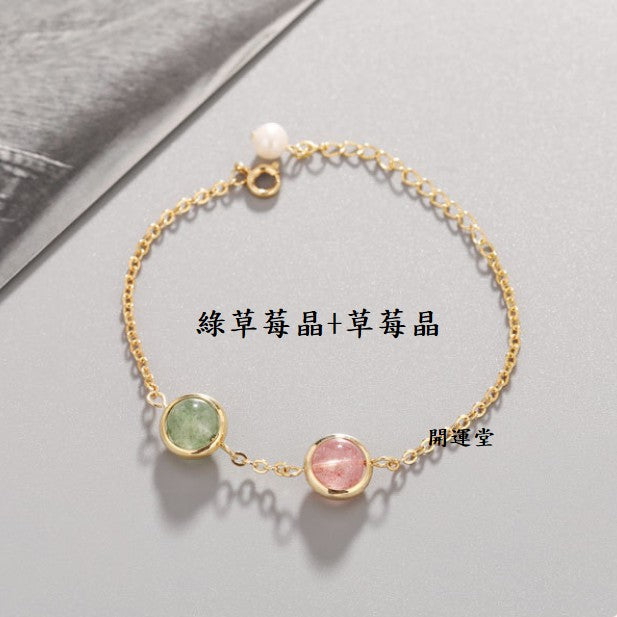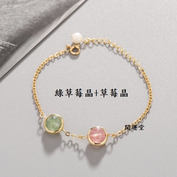 🔥現貨🔥天然水晶8mm鍍金手鍊草莓晶粉晶紫水晶黑髮晶紅瑪瑙金髮晶綠幽靈學生閨蜜雙珠情侶招桃花聖誕節情人節禮物【開運堂】