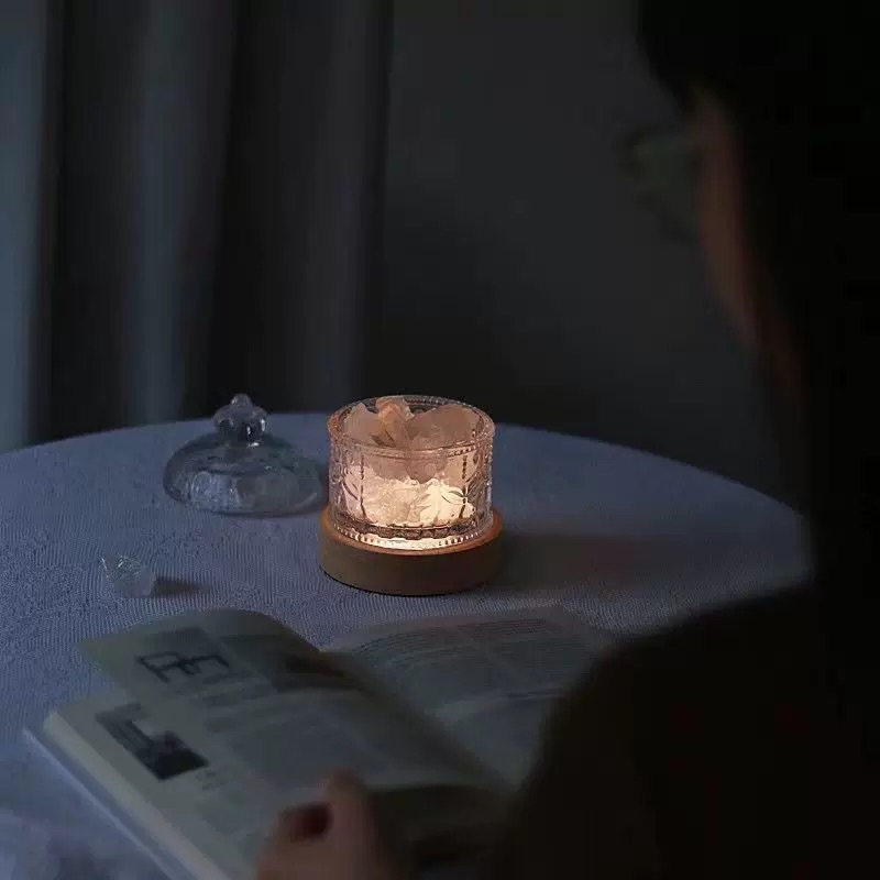 消磁碗消磁盒小夜燈水晶玻璃碗 擴香石 水晶原礦 USB燈座 LED燈
