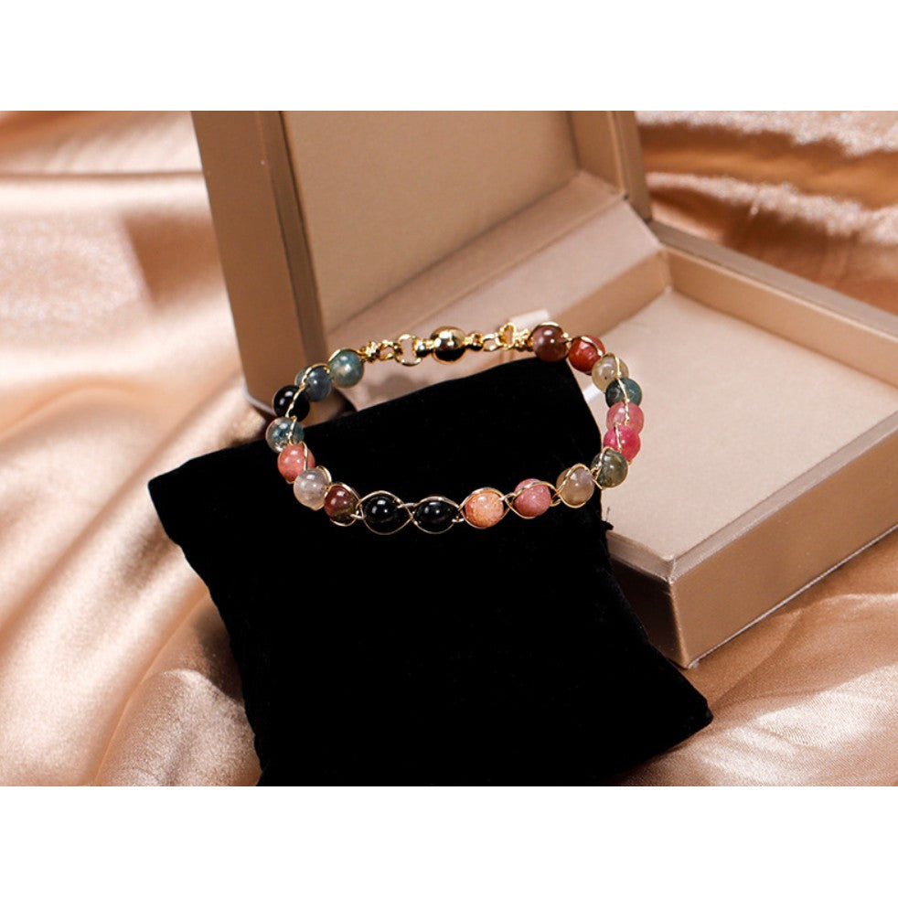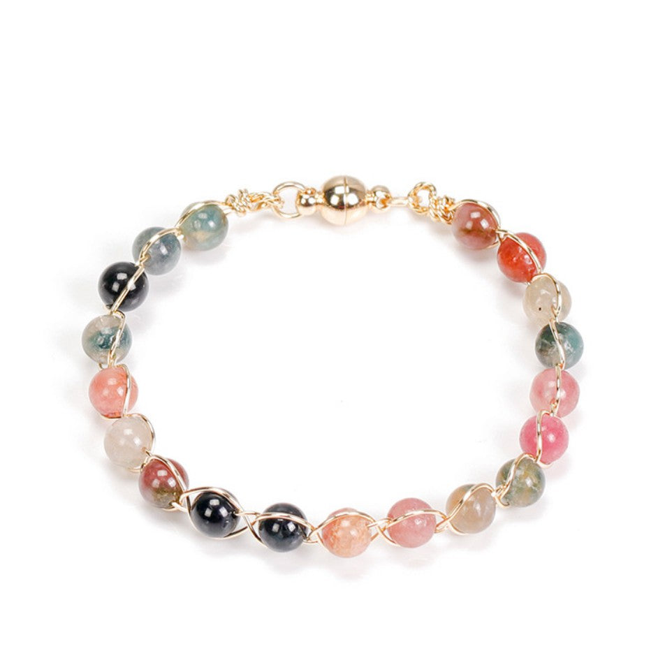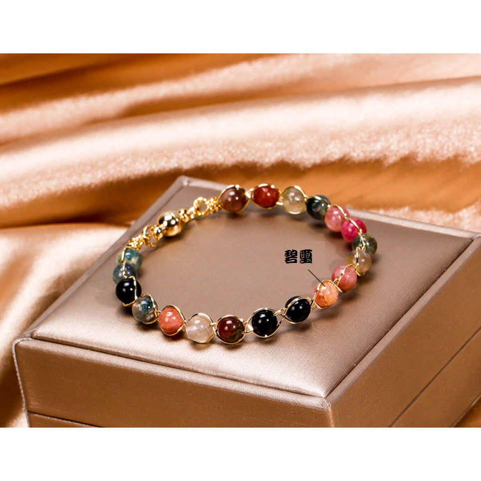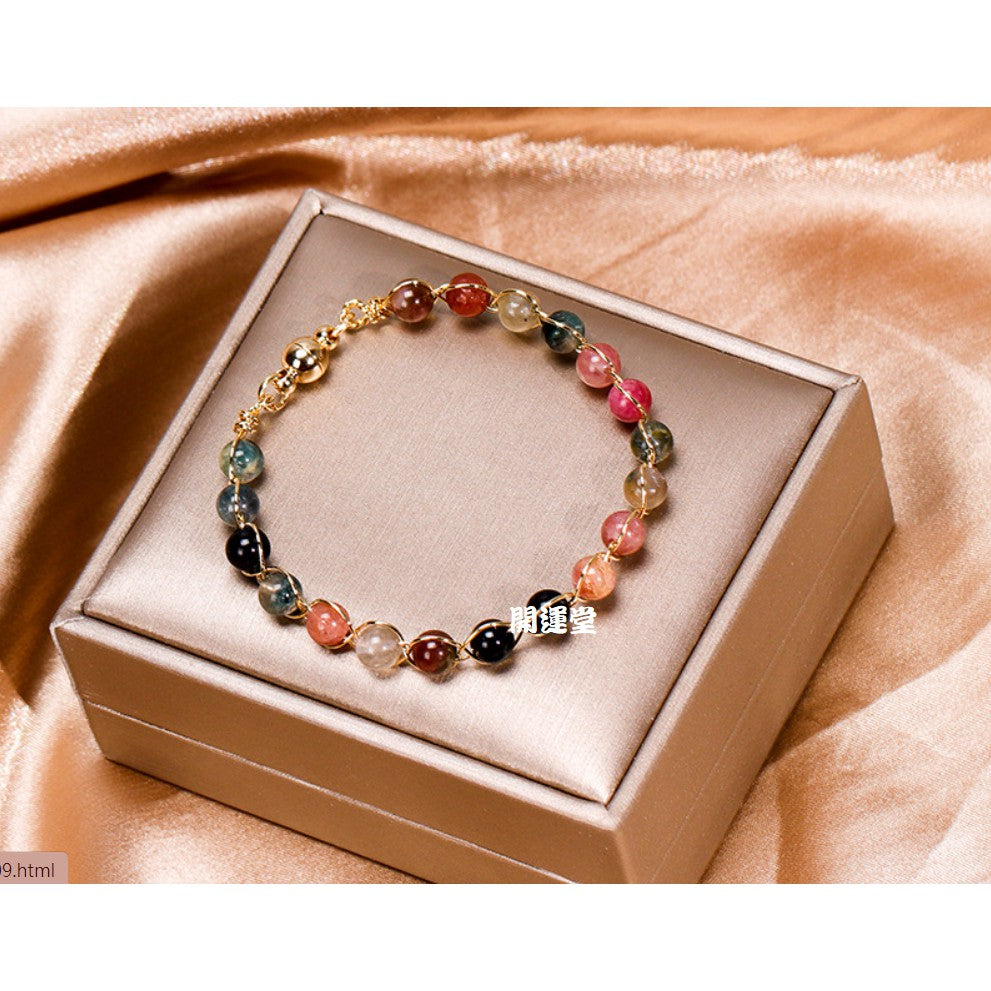 🔥現貨🔥6mm花碧璽吸鐵石手鍊女款鍍14K招財轉運幸運手串七彩水晶手飾【開運堂】