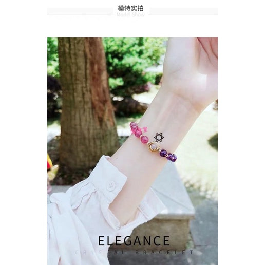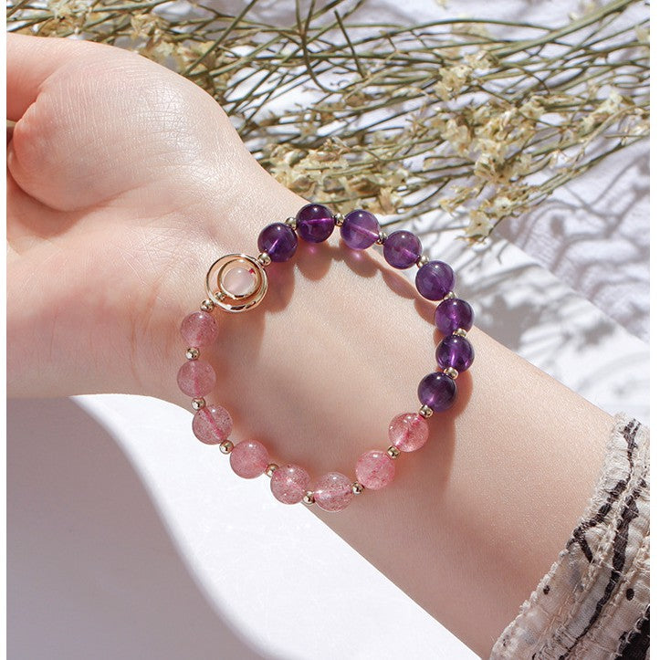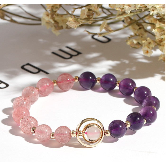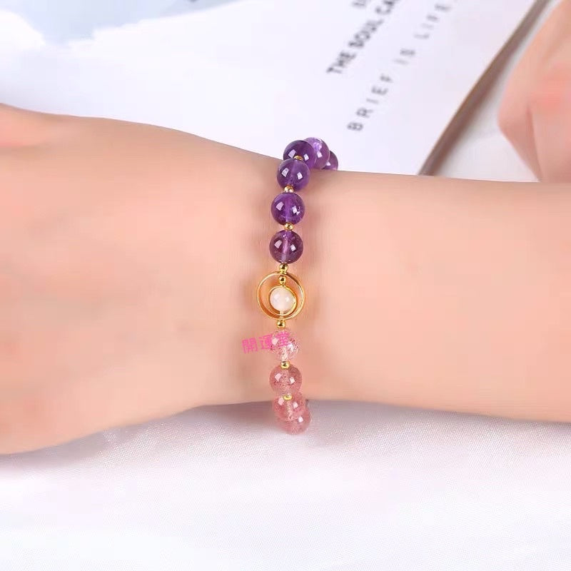 🔥️ 現貨️ 鍍14k金天然草莓晶薰衣草紫水晶情侶手鍊女月光石招財手串轉運招桃花