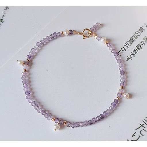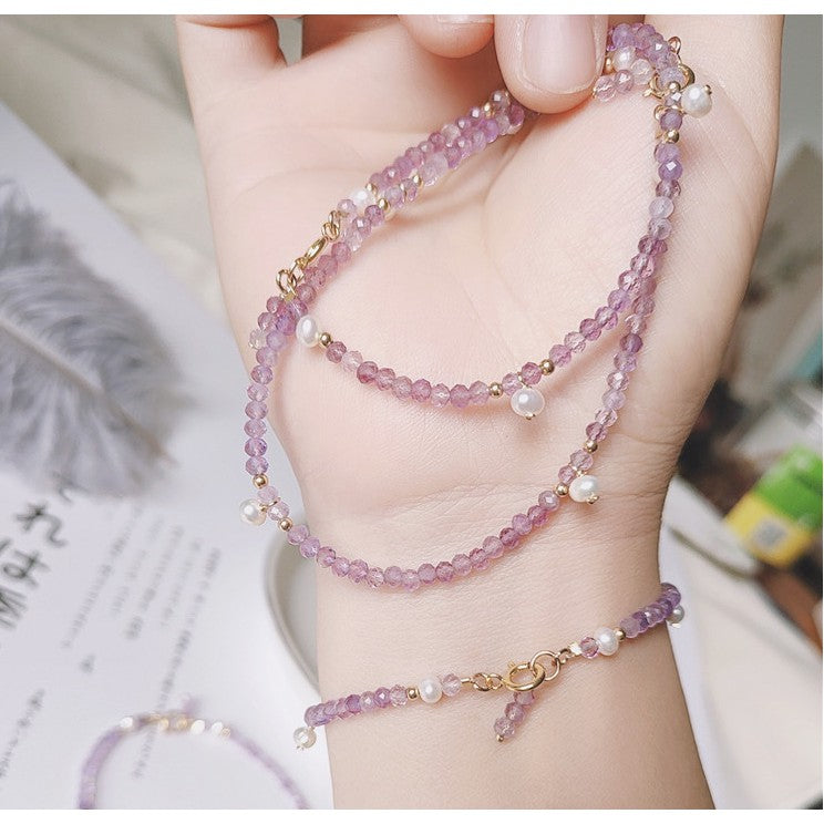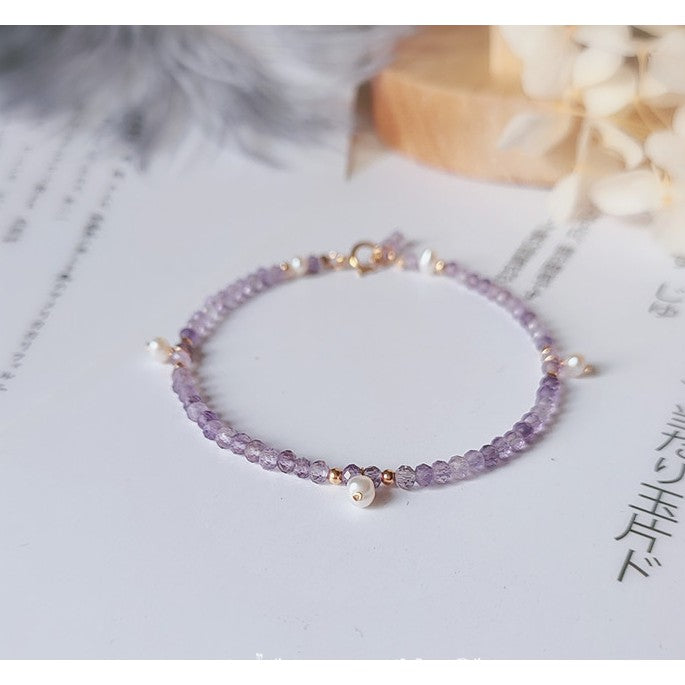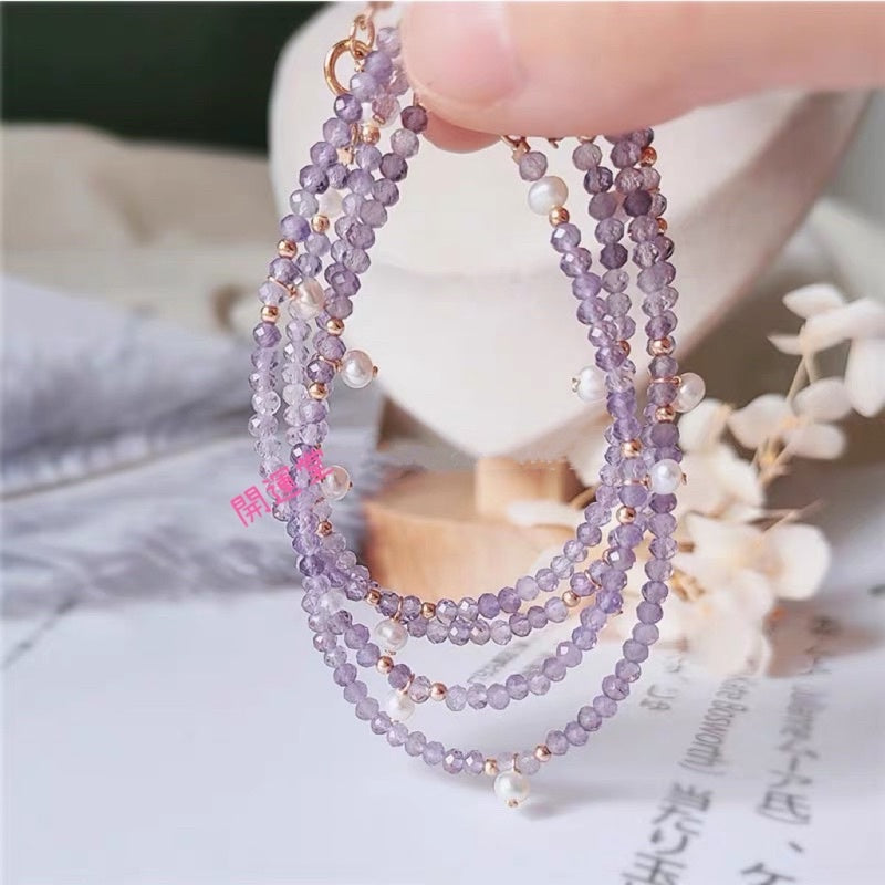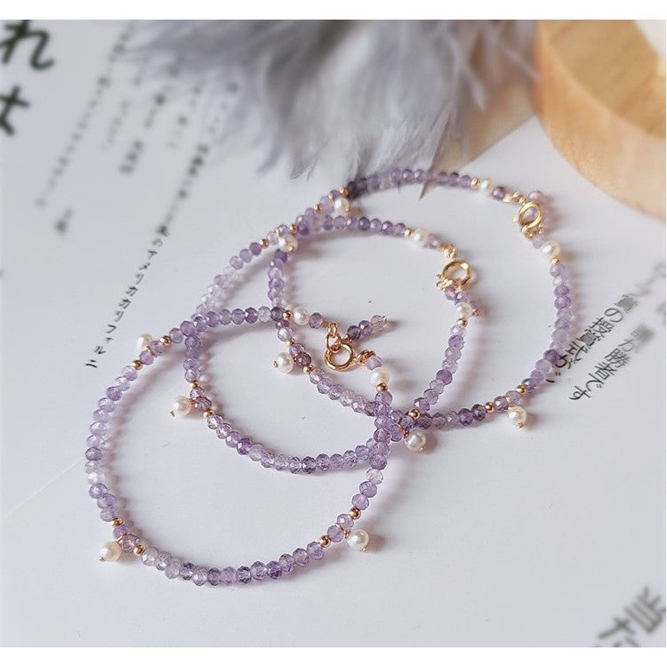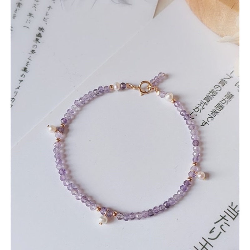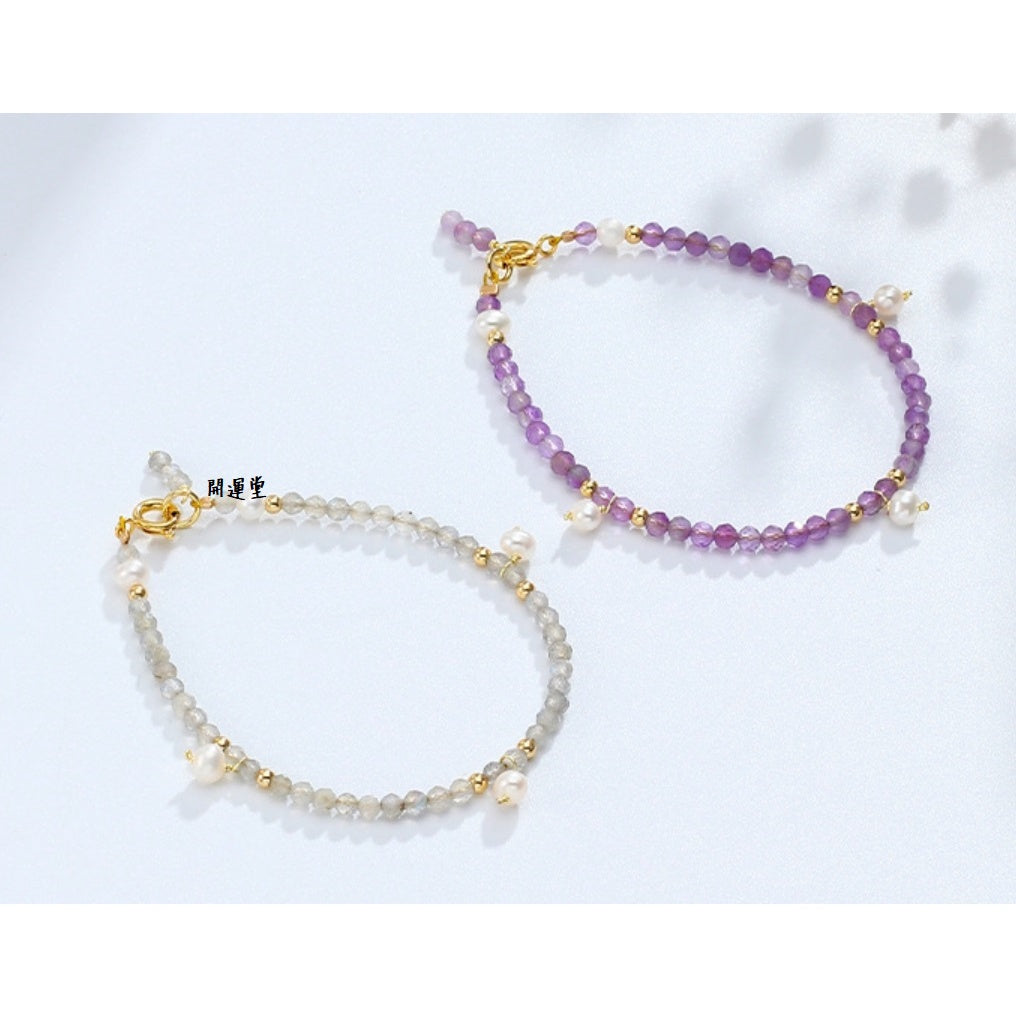 🔥現貨🔥【招貴人,智慧】3mm天然薰衣草紫水晶珍珠細手鍊女原創閨蜜