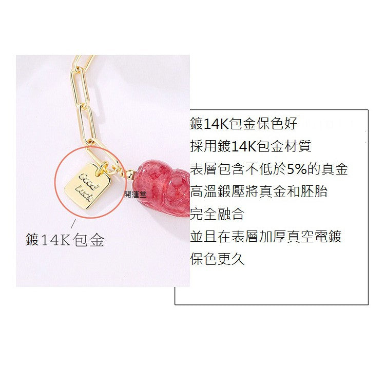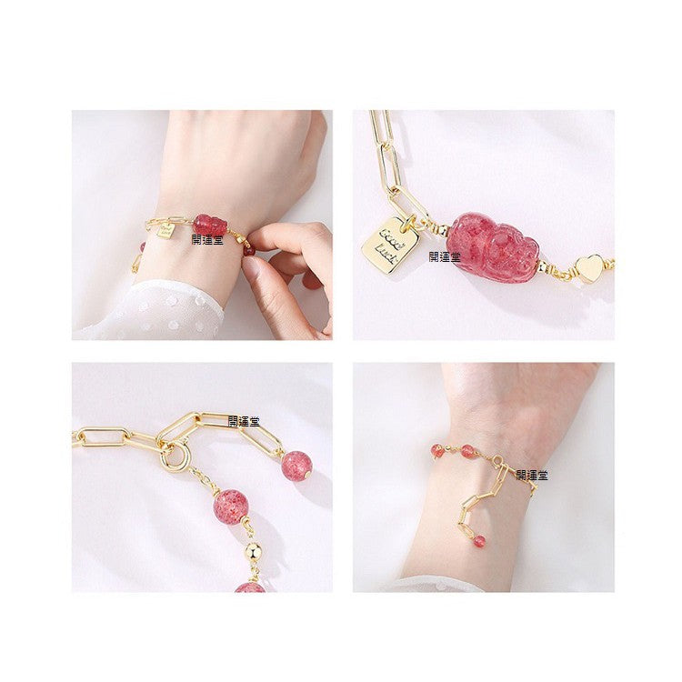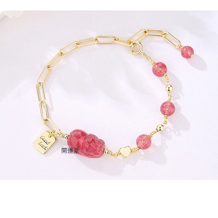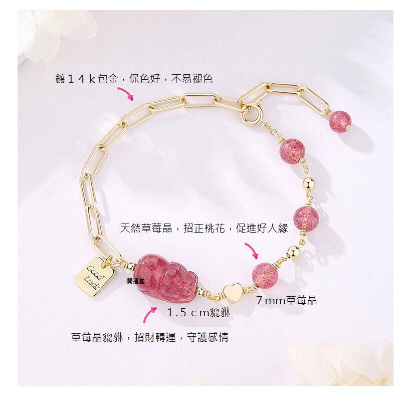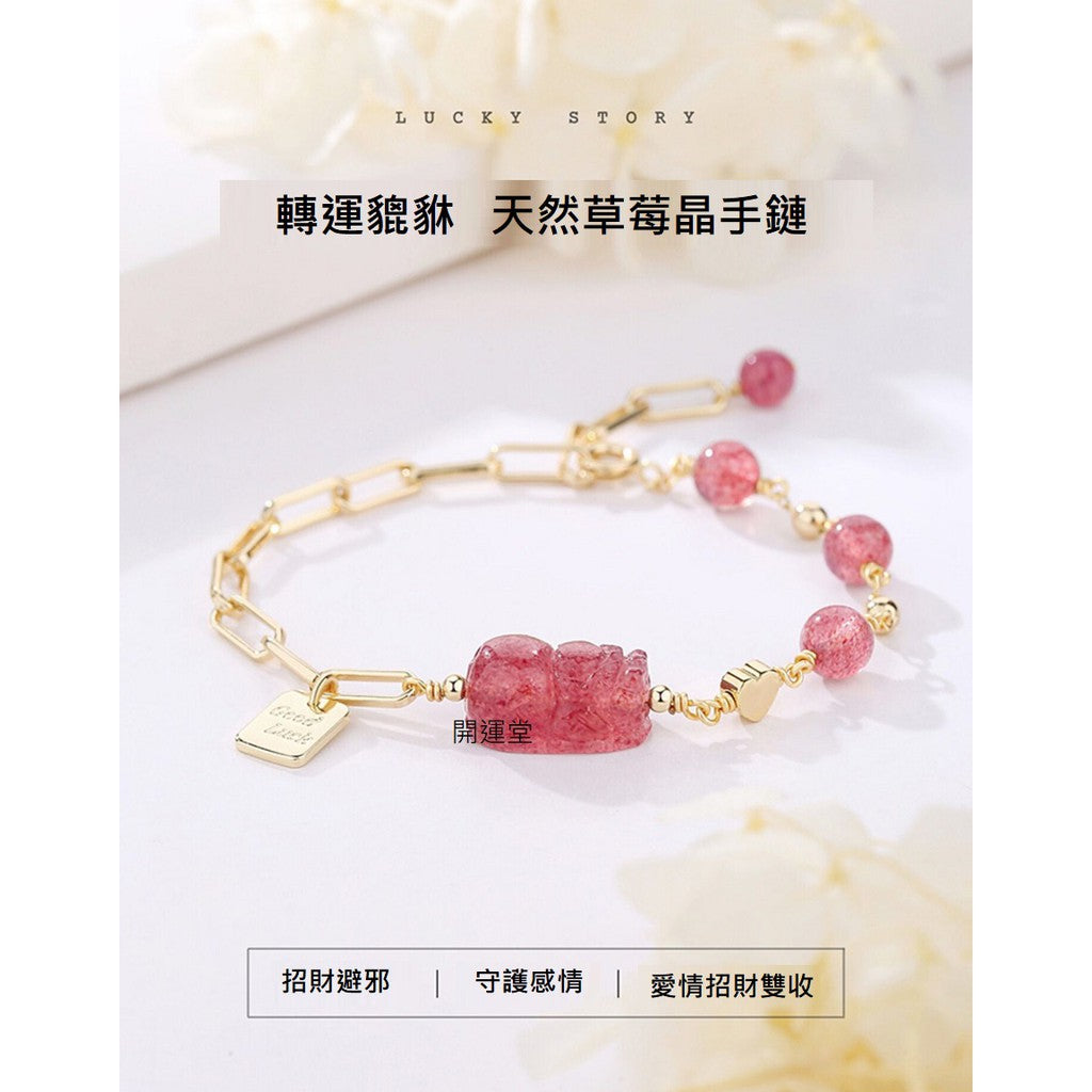 🔥現貨🔥天然7mm草莓晶手鍊女貔貅辟邪招桃花運草莓晶手串小眾設計送閨蜜【開運堂】