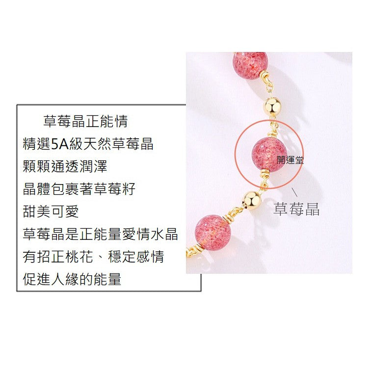 1:佩戴草莓晶有助於提升愛情運勢,又能讓思考變得更清晰及令心境平和安詳。