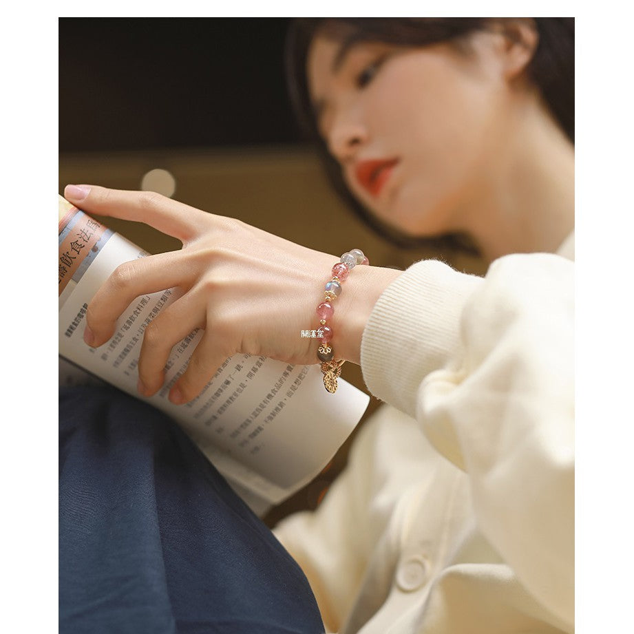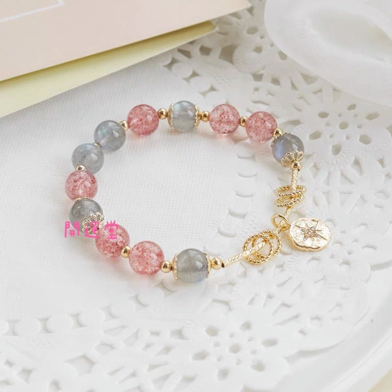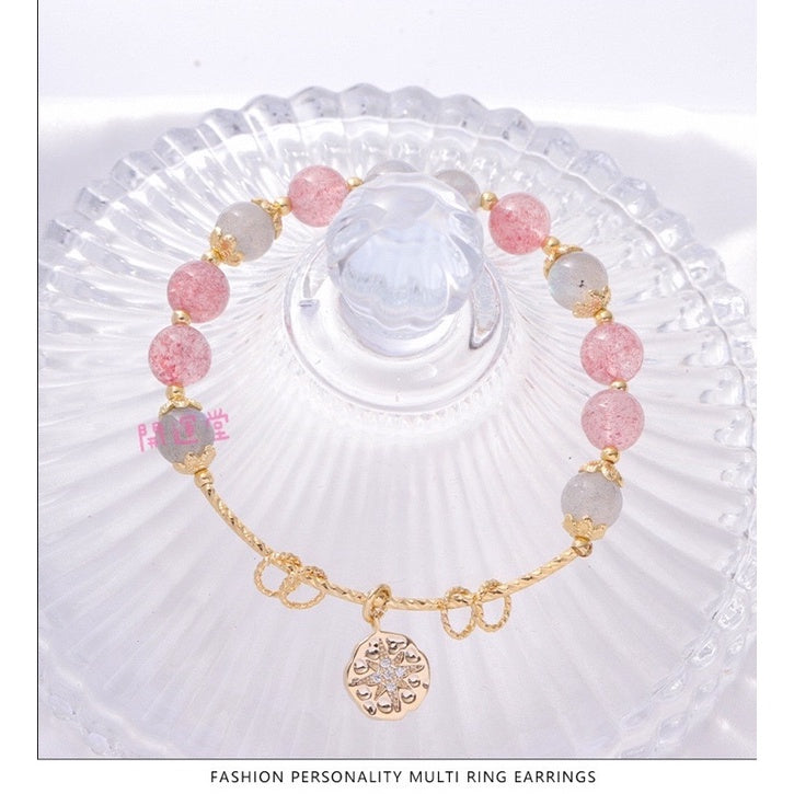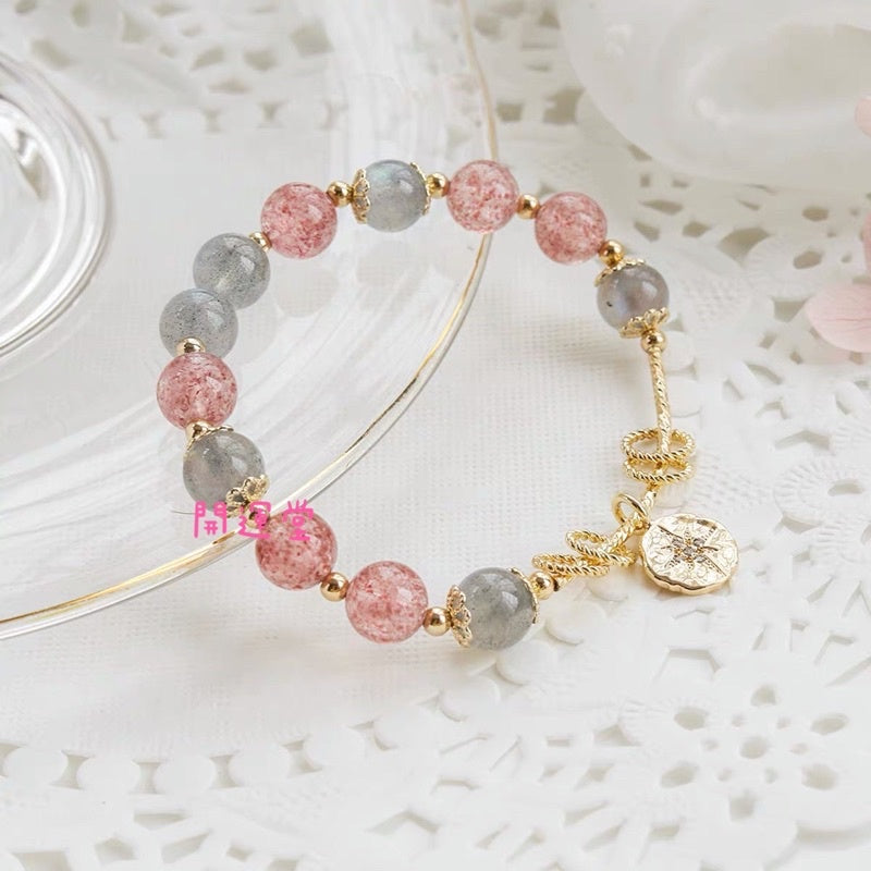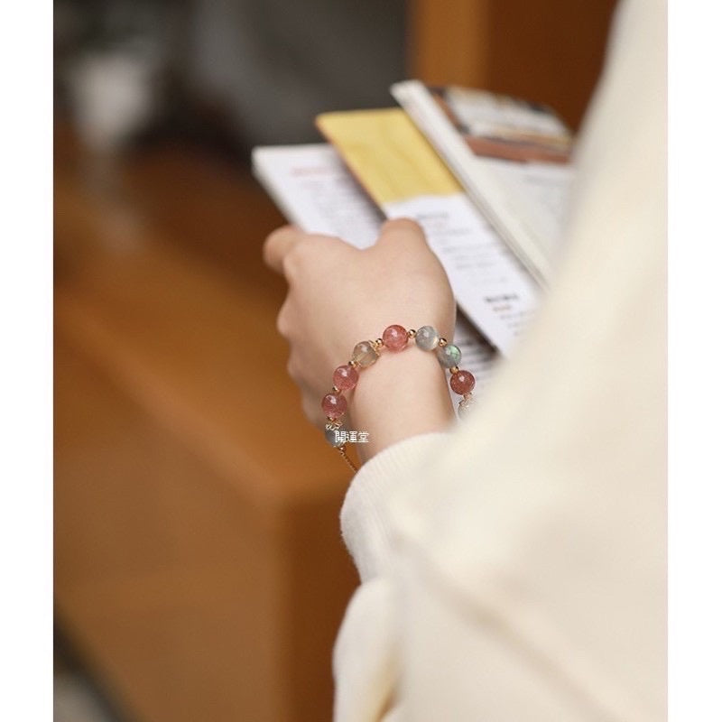 🔥現貨🔥天然草莓晶灰月光水晶銅鍍金手鍊女ins小眾設計款招桃花轉運灰月光石手串【開運堂】
