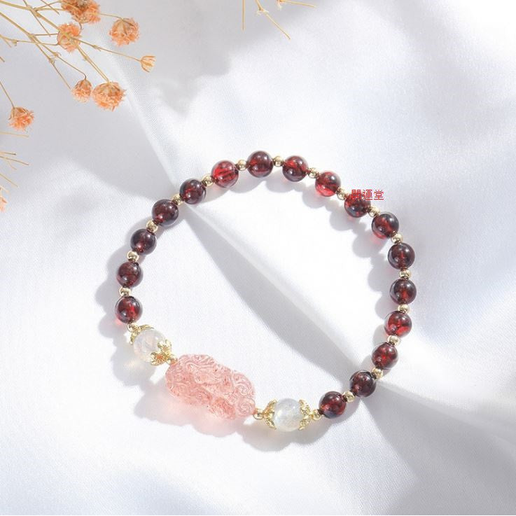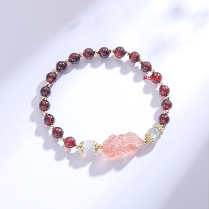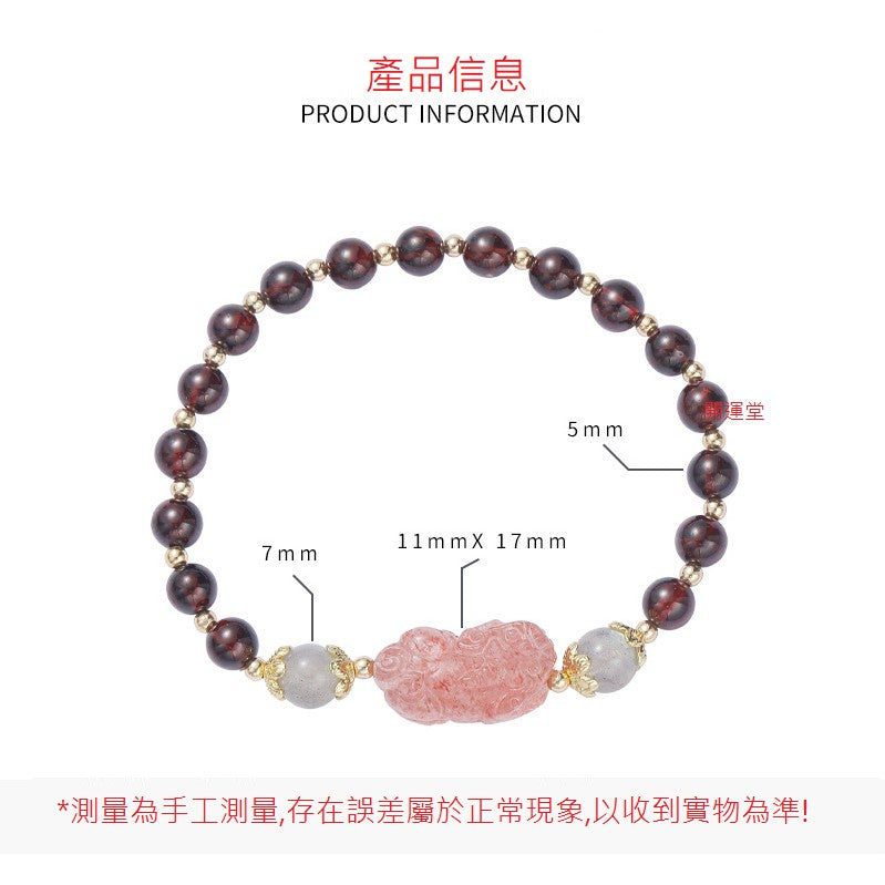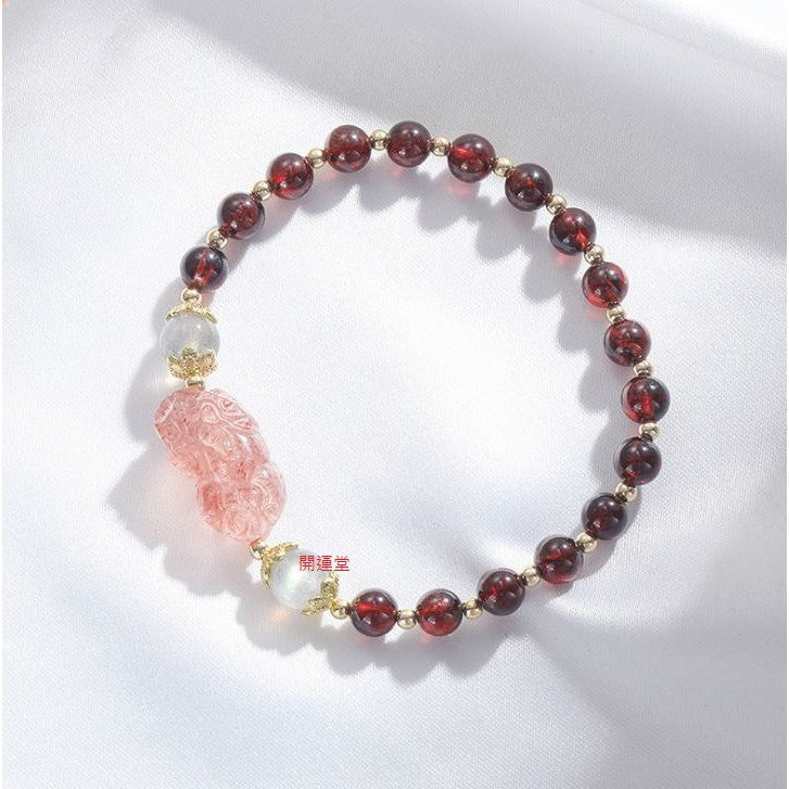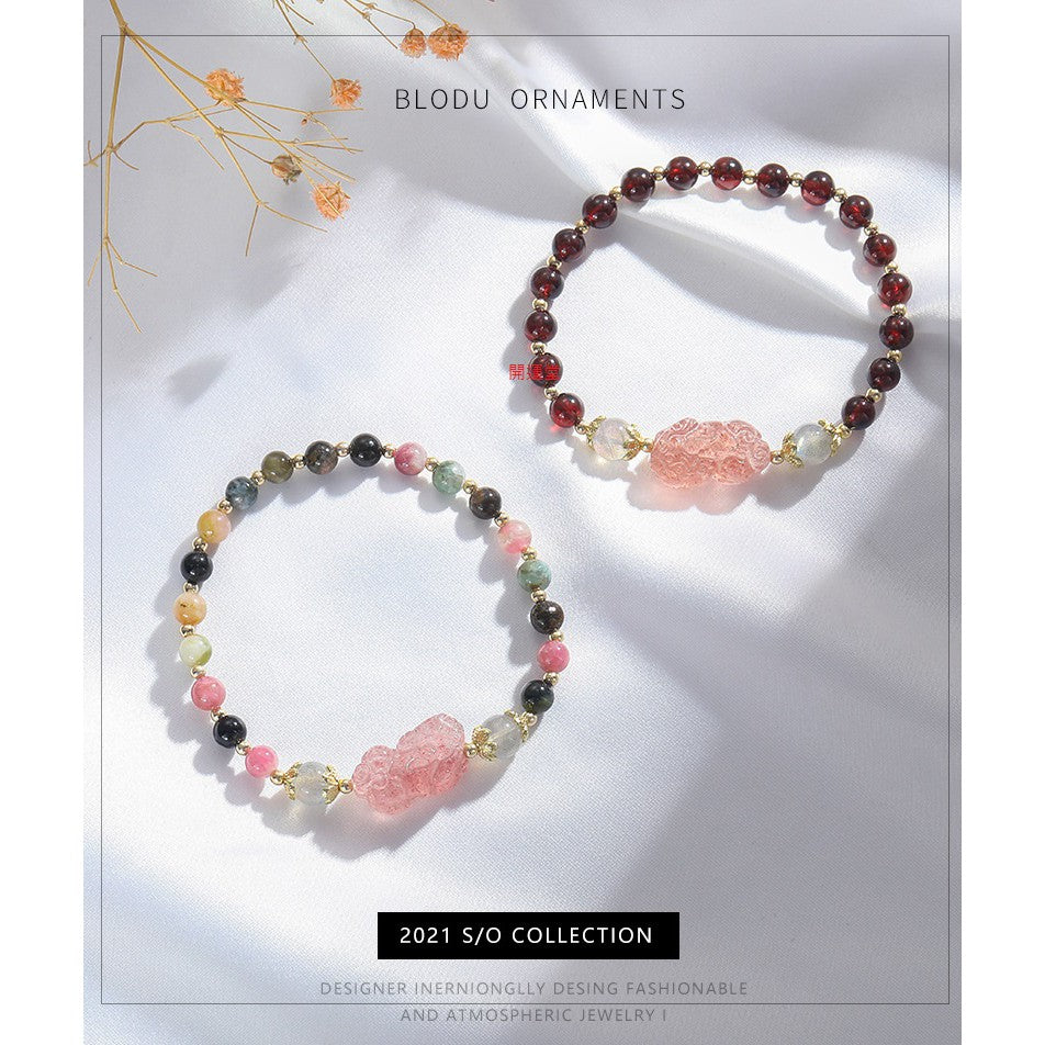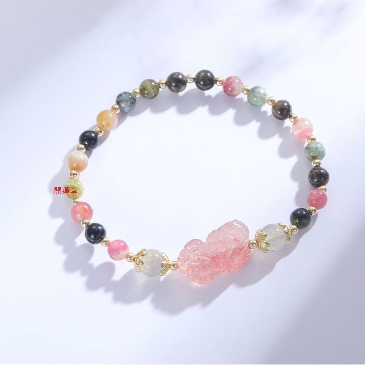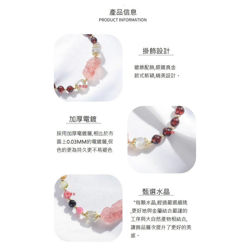 🔥現貨🔥天然糖果彩虹花碧璽石榴石水晶電鍍加厚手鍊貔貅小眾設計冷淡風轉運手串禮物【開運堂】