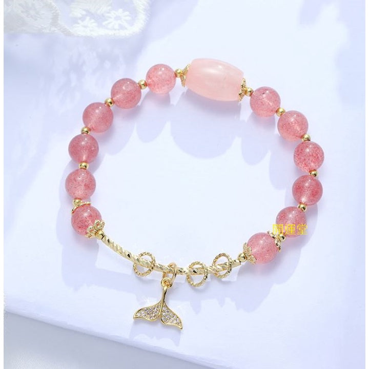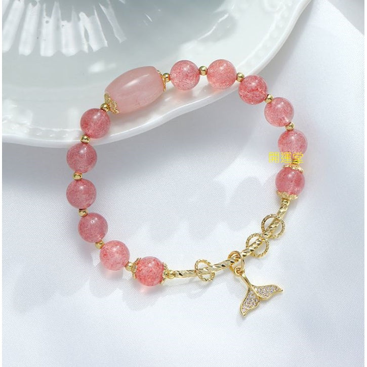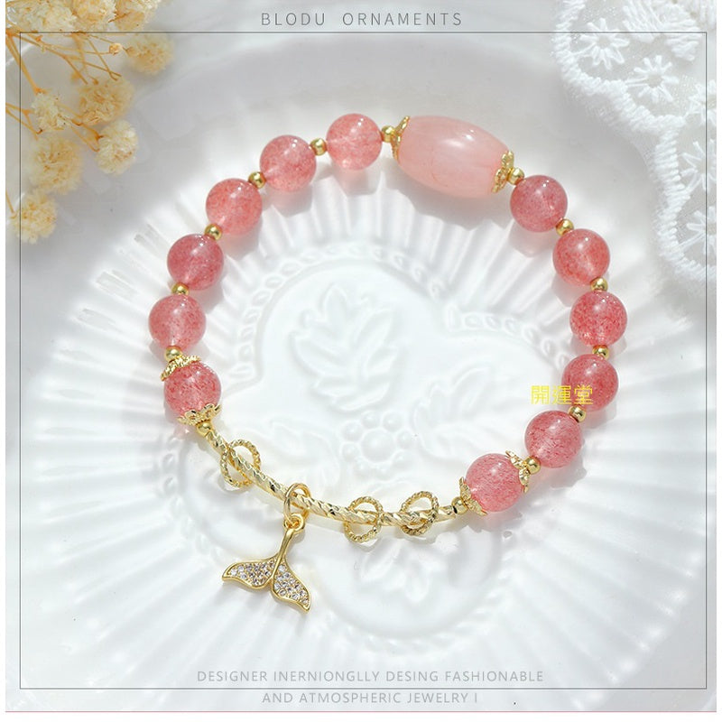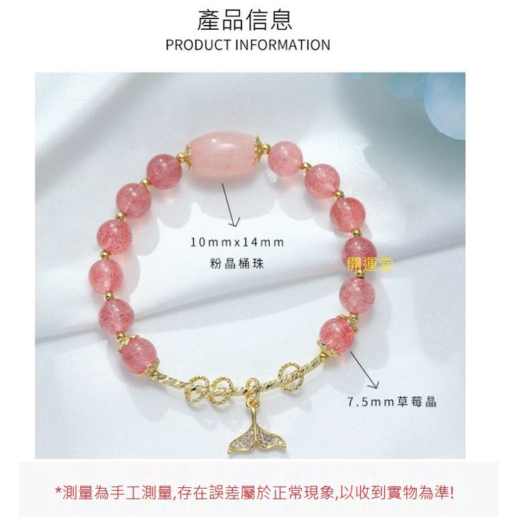 🔥現貨🔥【鯨起漣漪】天然草莓晶手鍊女生墜鯨尾粉晶桶珠招桃花運手串飾品【開運堂】