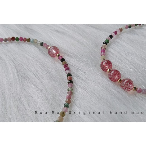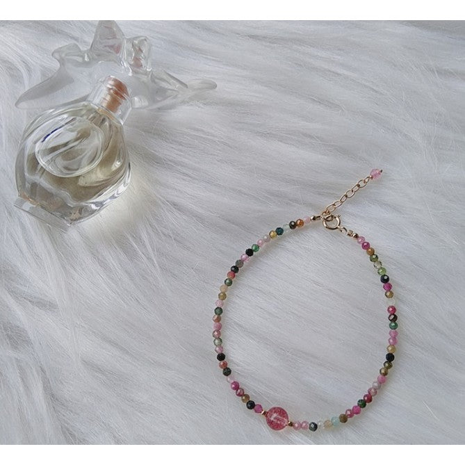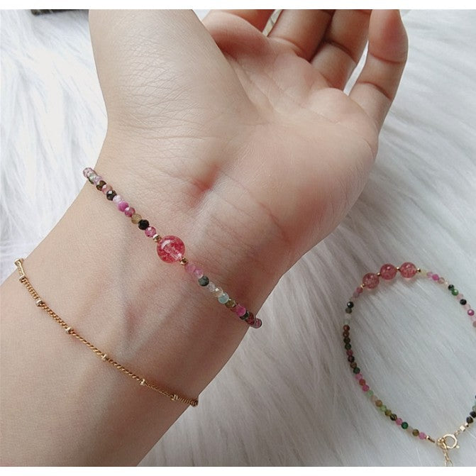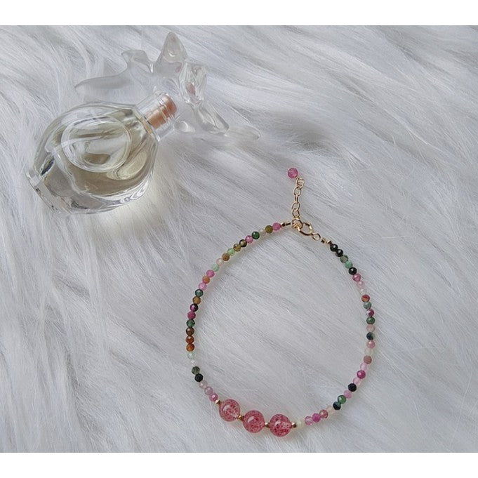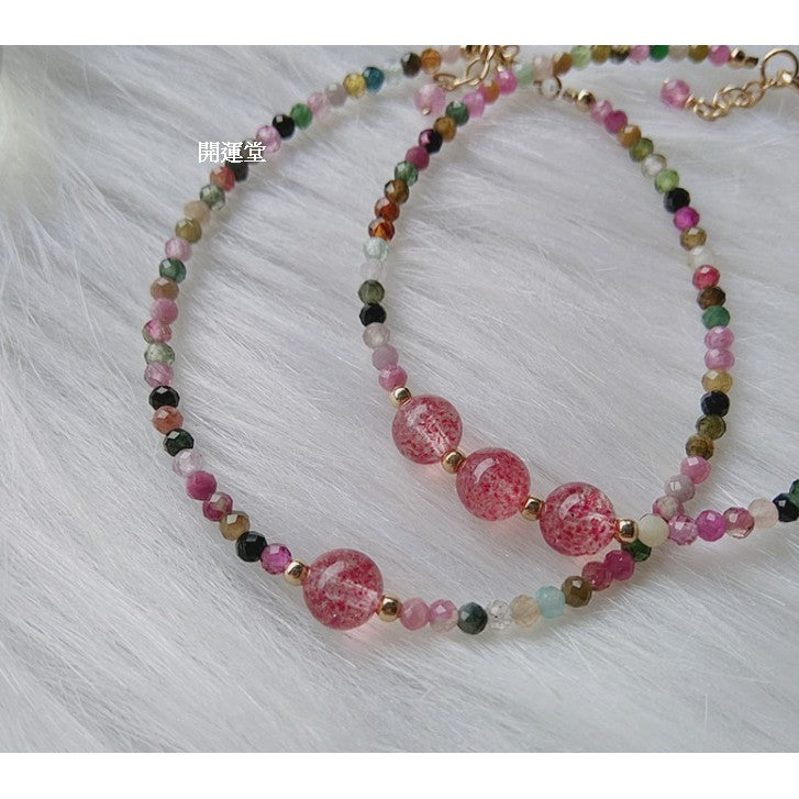 🔥現貨🔥6A極細5.5mm草莓晶招桃花招財2mm糖果碧璽水晶鍍14k包金手鍊女友閨蜜禮物"開運堂"