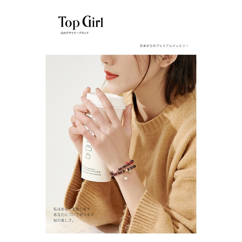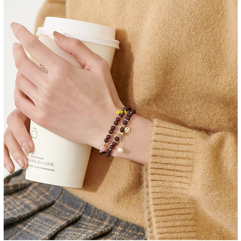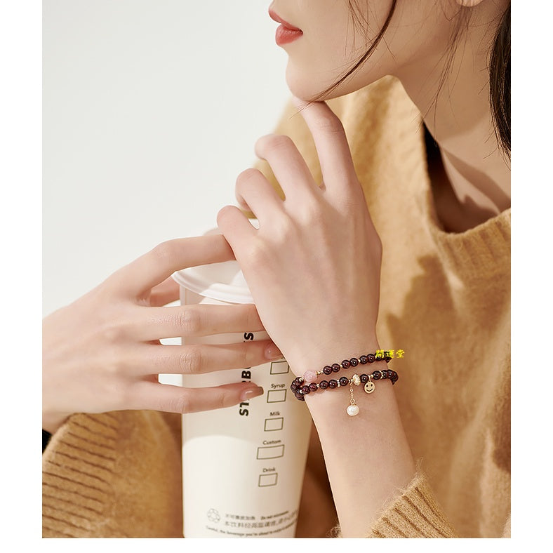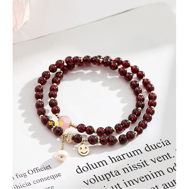 🔥現貨🔥4.5mm天然石榴石笑臉配件手鍊女雙圈鍍金水晶手串生日禮物【飾品批發】