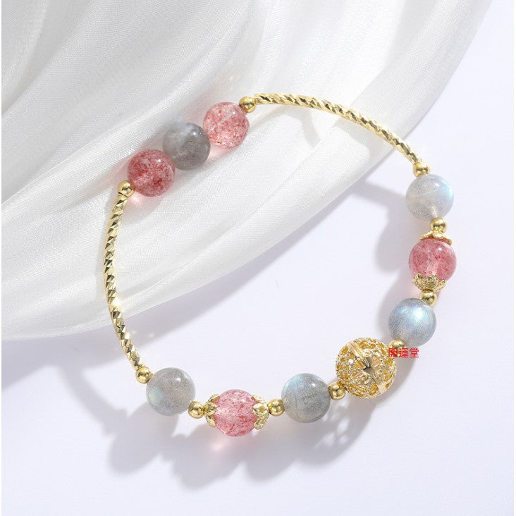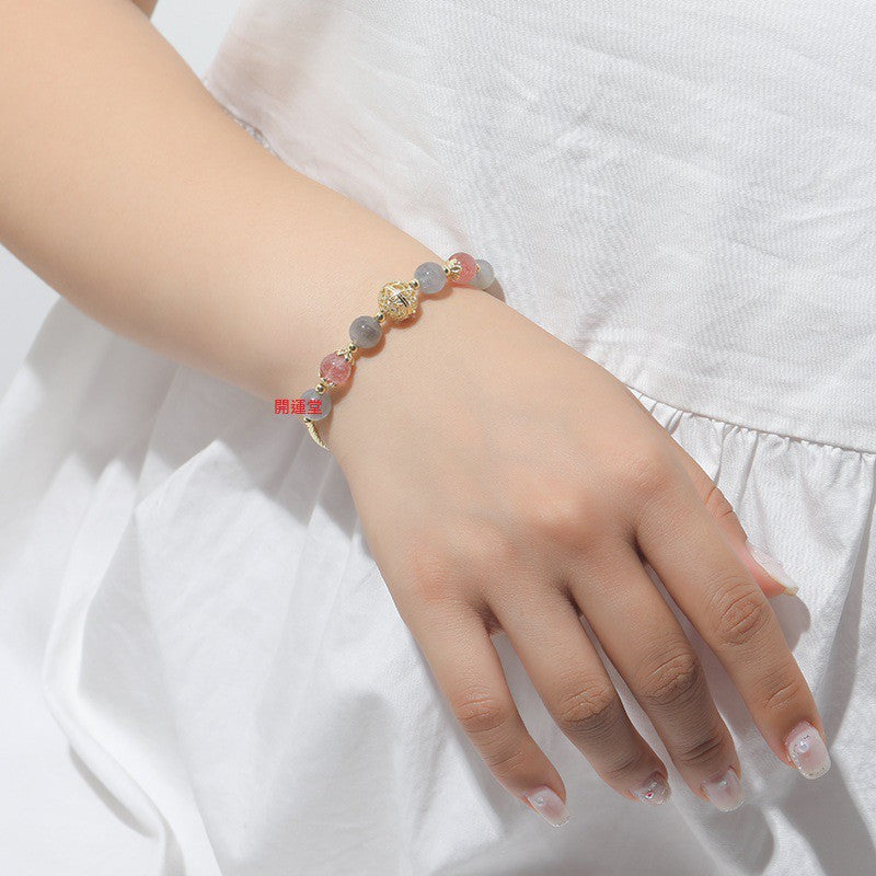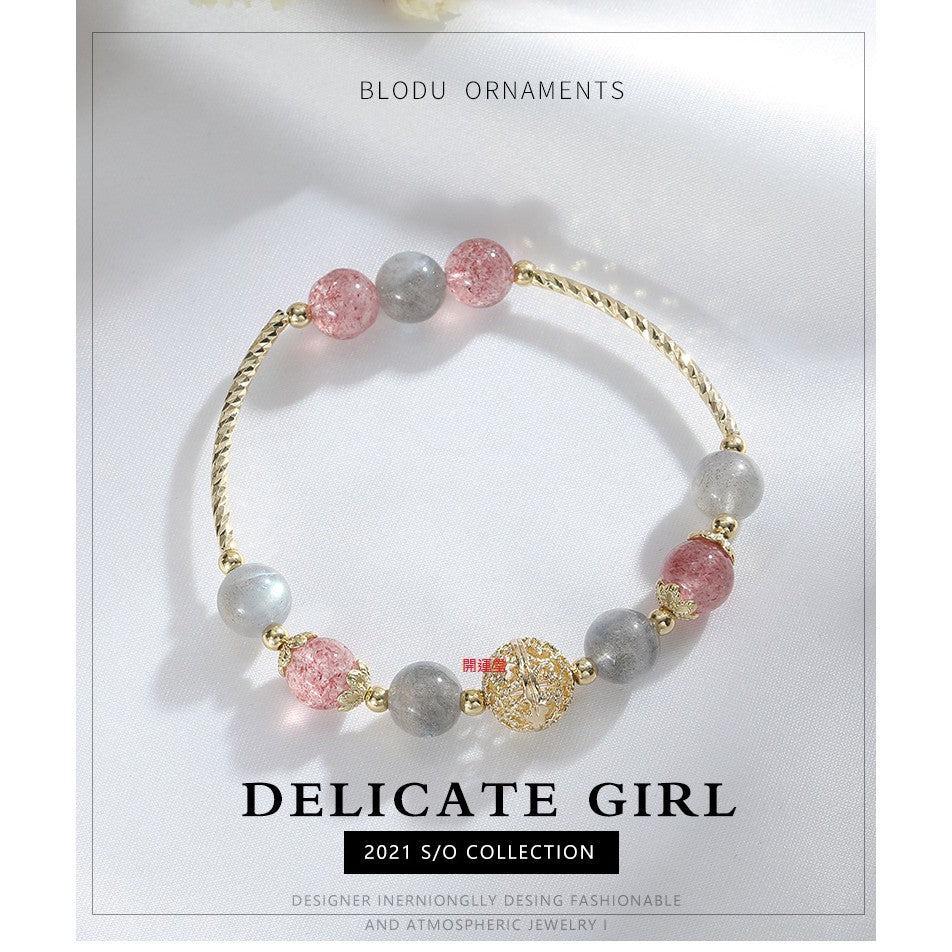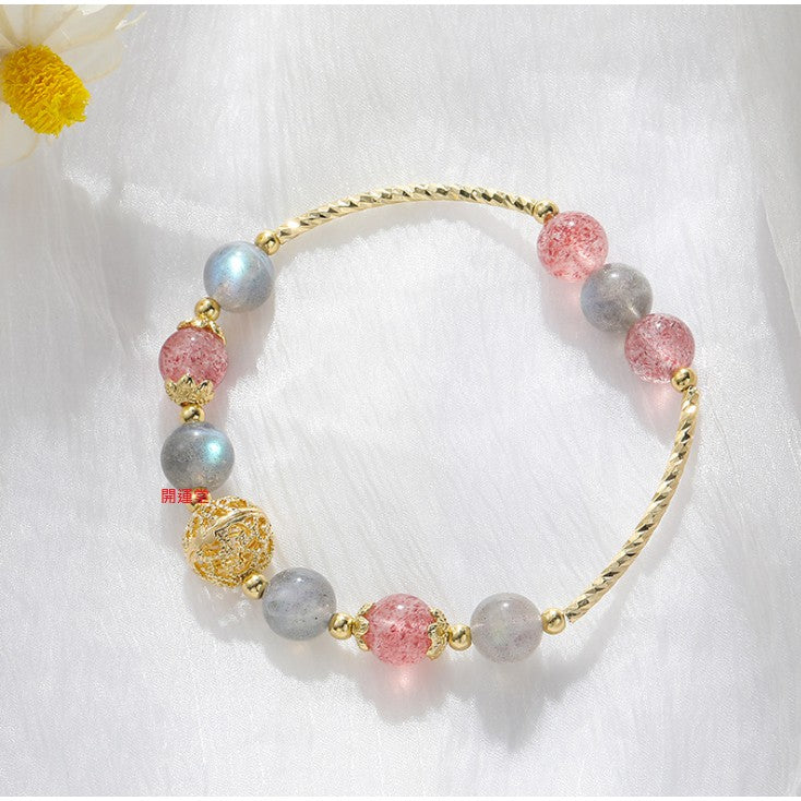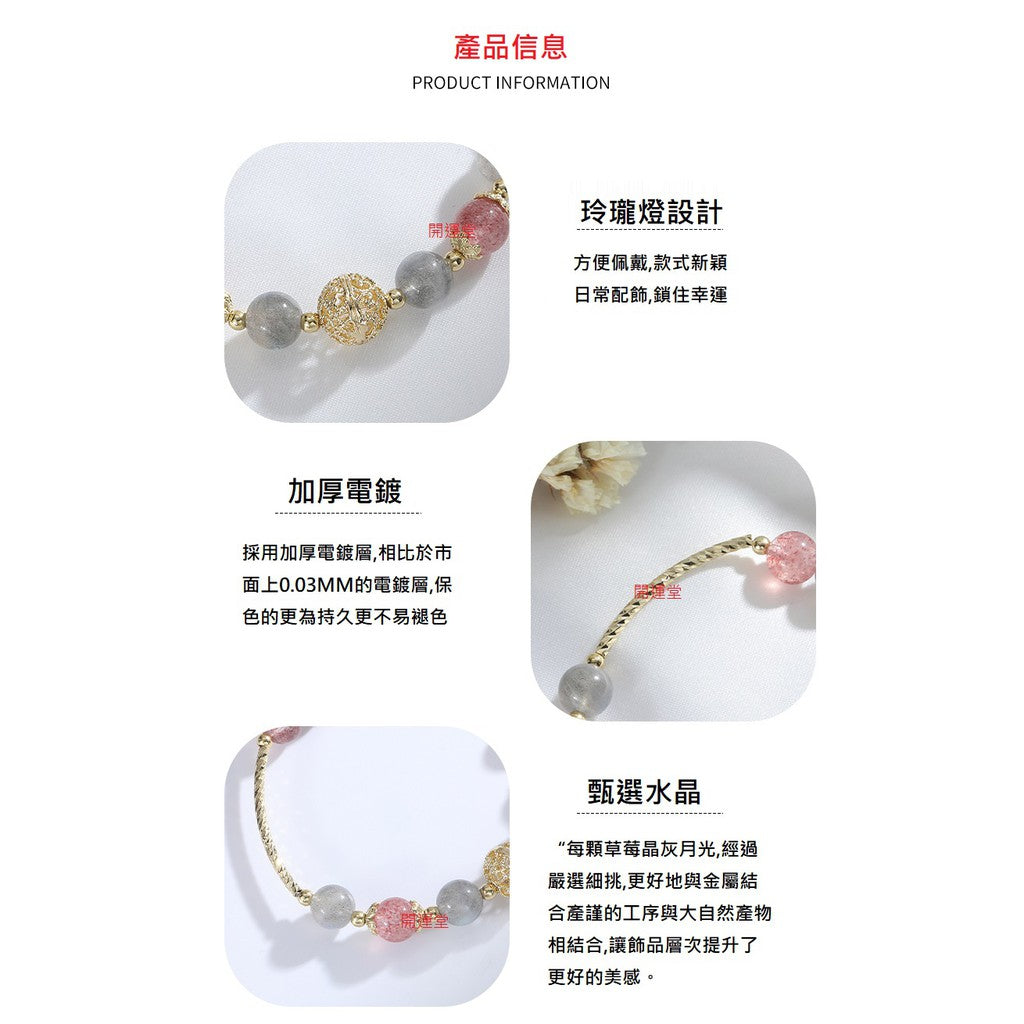 🔥現貨🔥天然8mm草莓晶灰月光石手鍊女招桃花鏤空球閨蜜情人節禮物【開運堂】