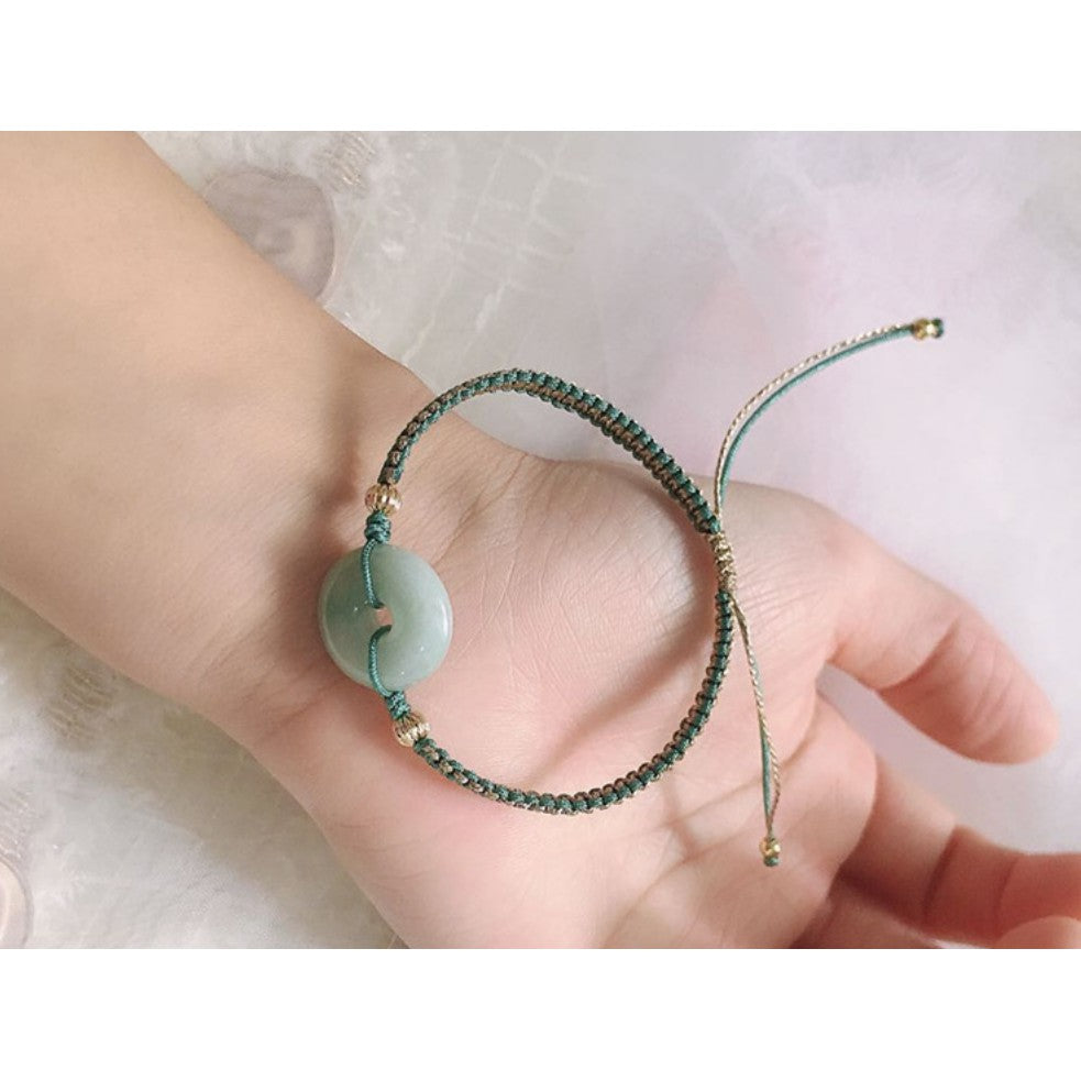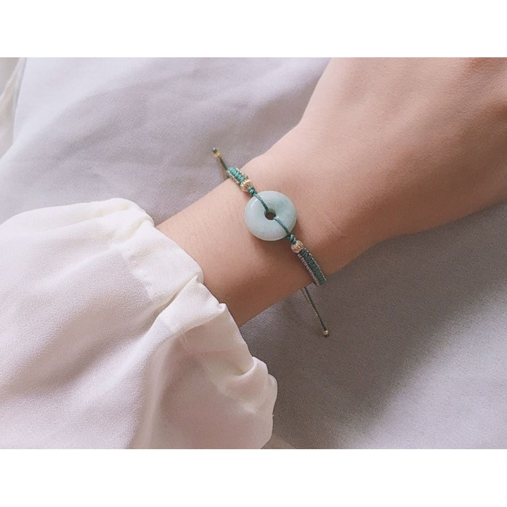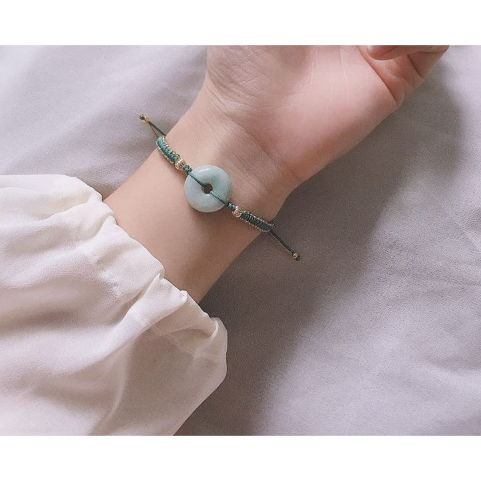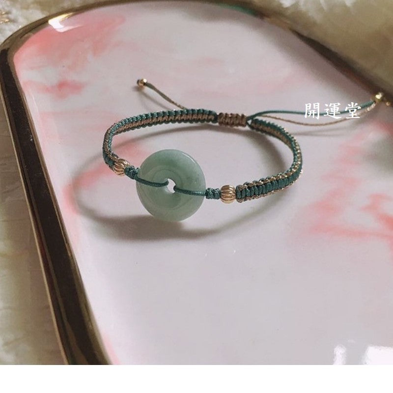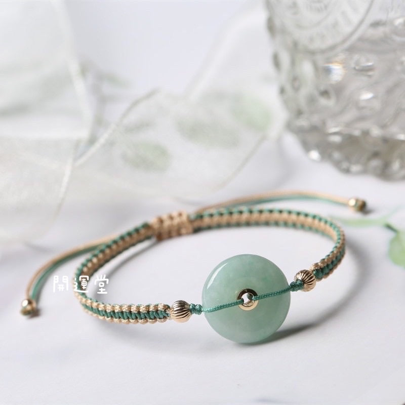 現貨天然翡翠平安扣手鍊手串14k包金手鍊女緬甸翡翠玉"開運堂"