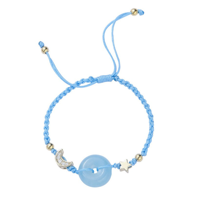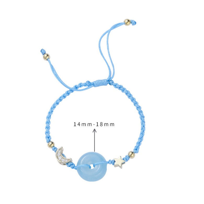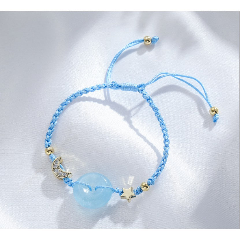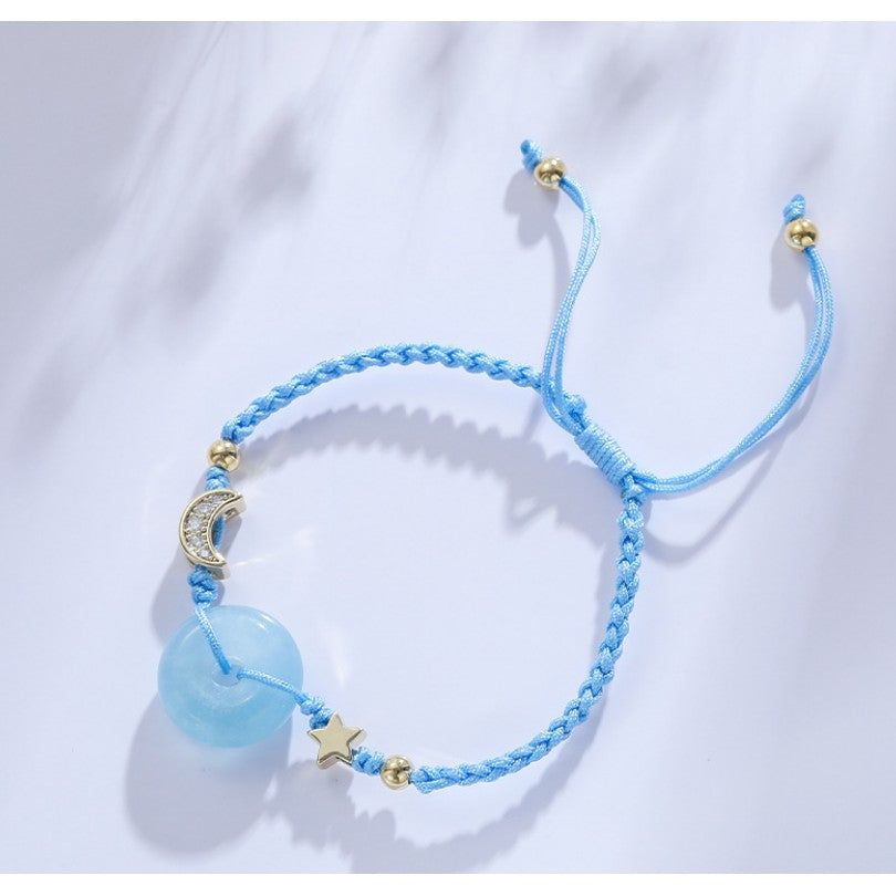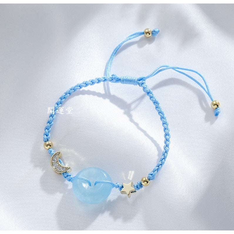 🔥現貨🔥天然海藍寶平安扣手鍊女星月守護編繩手飾女手鍊閨蜜禮物【飾品批發】