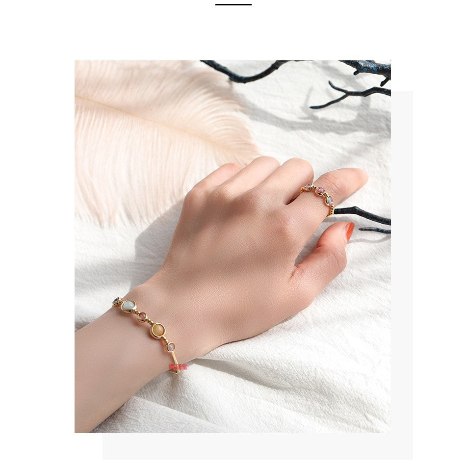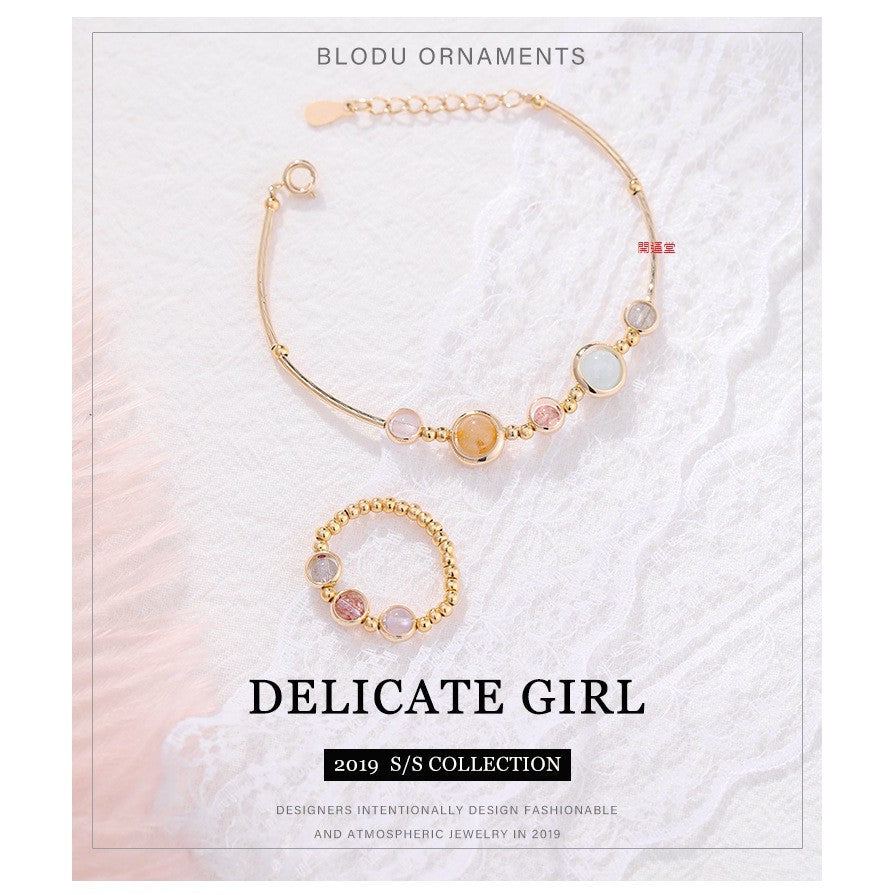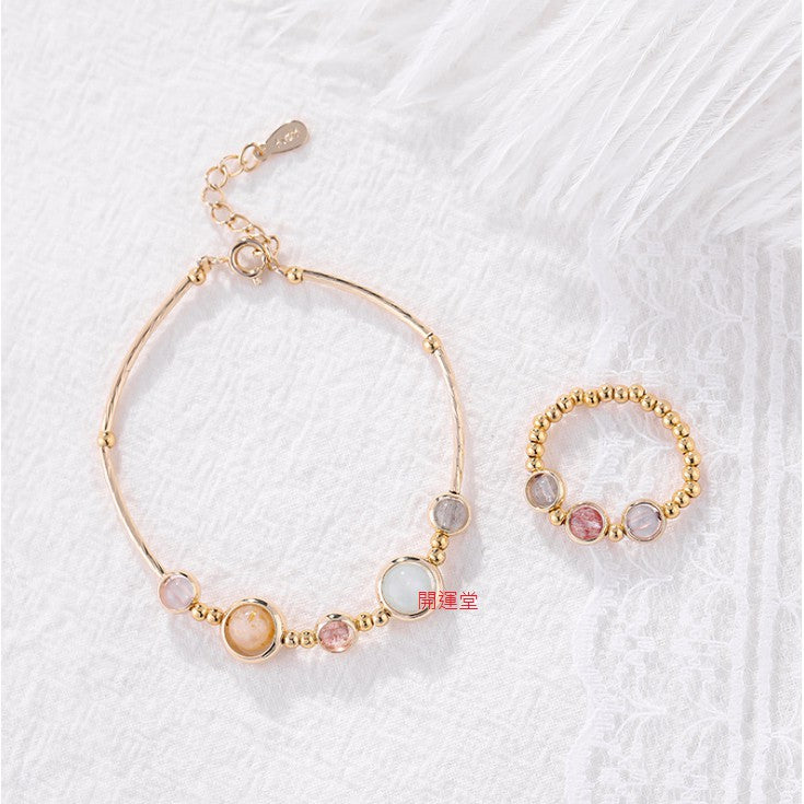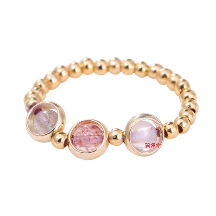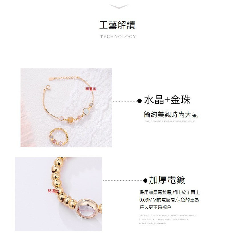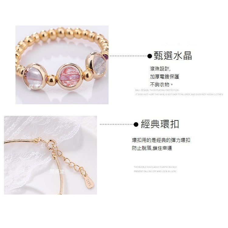 🔥現貨🔥【手鍊、戒指】草莓晶灰月光紫水晶海藍寶轉運水晶電鍍加厚手鍊女送禮閨蜜水晶手環森系風套裝手飾【開運堂】
