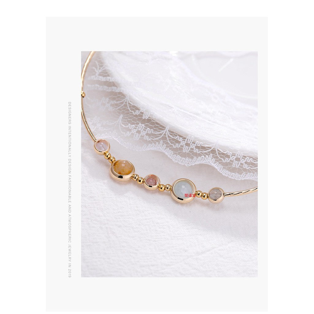 手鏈:6mm海藍寶、金髮晶 , 4mm紫水晶、草莓晶、灰月光
