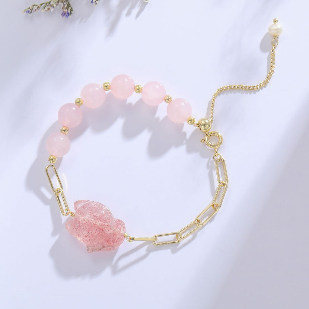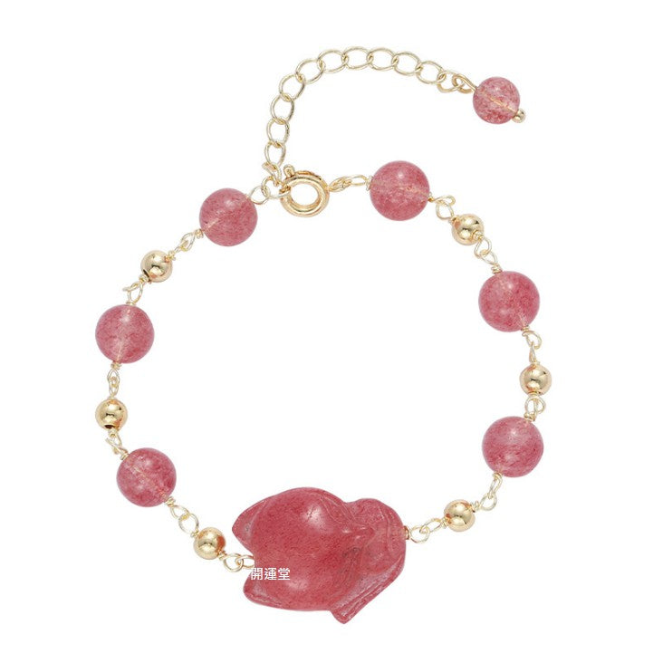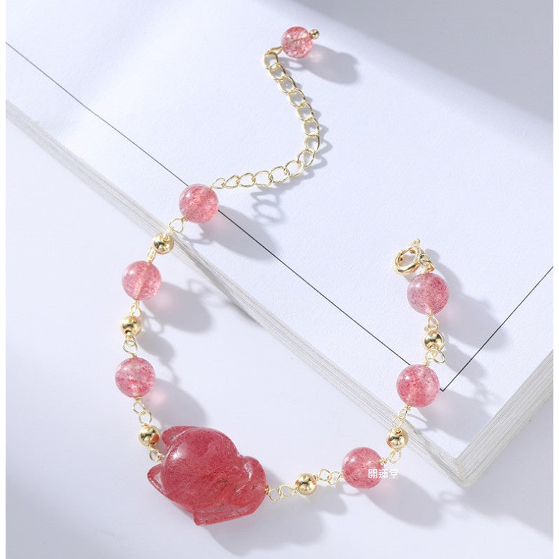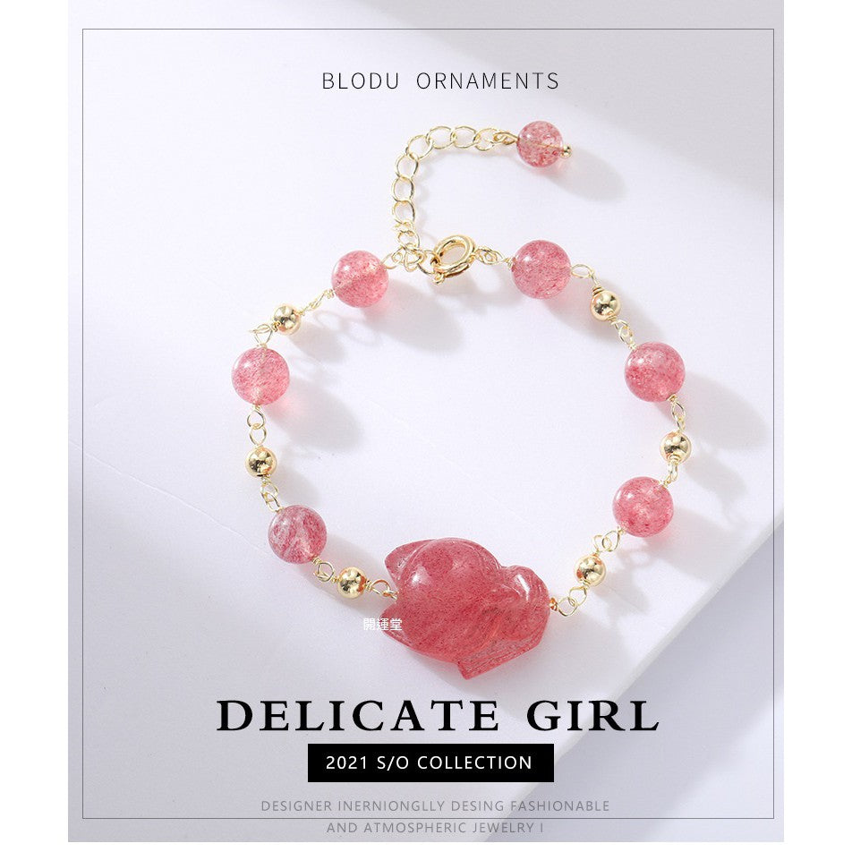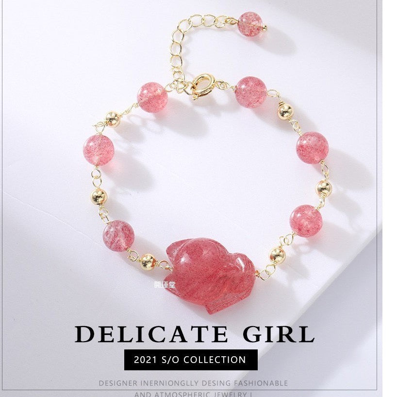 🔥現貨🔥天然6mm草莓晶狐仙手鍊女小狐狸轉運招桃花運草莓晶手串小狐狸送女友禮物【開運堂】