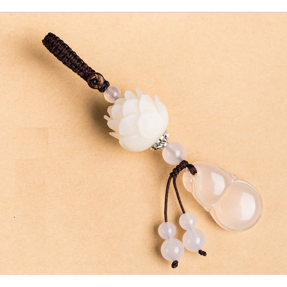 瑪瑙玉髓平安扣汽車鑰匙挂件菩提蓮花鑰匙扣
