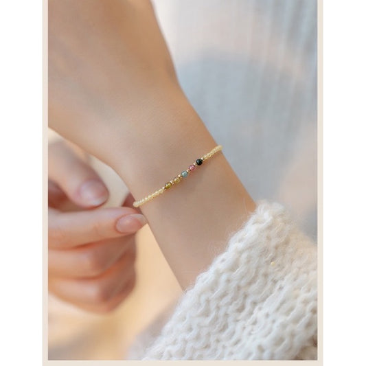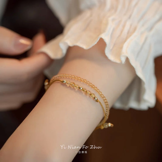 (B238203)黃水晶金髮晶天然石招財金珠小眾設計禮物14k金輕奢疊戴手鍊女