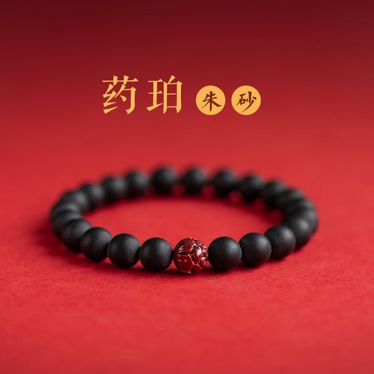 藥珀蓮花硃砂手鍊文藝男女手串復古民族風本命年現貨一件代發B23922-3"手串批發"
