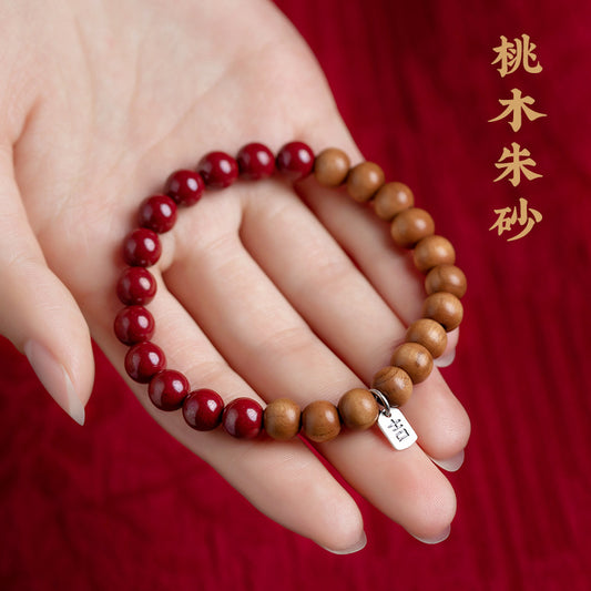 新款國潮半藏桃木硃砂手鍊兔年男女木質文藝手串民族風本命年B23922-2"手串批發"