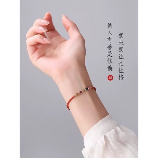 現貨 【硃砂小紅花】吉牌石榴石微彈性繩手鍊硃砂小紅花金珠串珠手串閨蜜送禮
