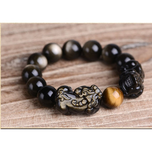 🔥現貨🔥貔貅手串招財避邪擋煞天然金曜石手鍊金耀石雙貔貅手鍊"開運堂"
