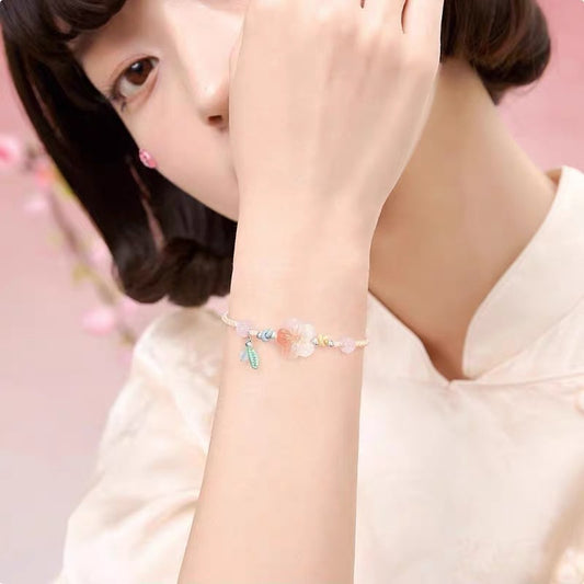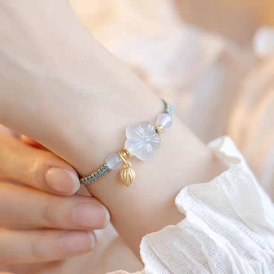 🔥現貨🔥現貨【白瑪瑙梅花】白瑪瑙梅花小眾手鍊女中國風可調節編織手繩禮物玉髓【開運堂】