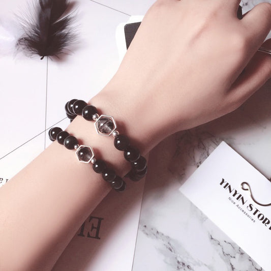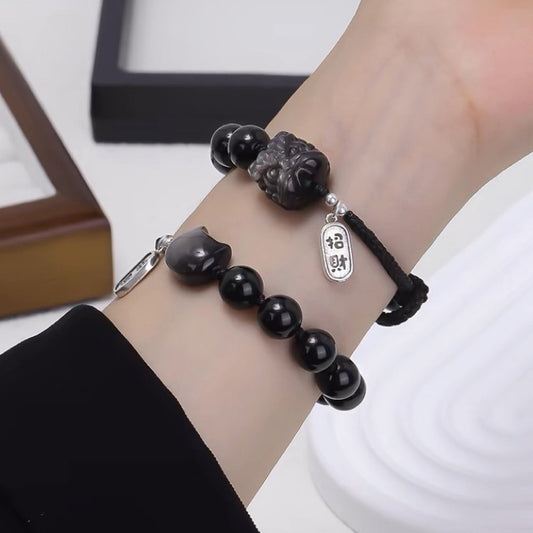 🔥現貨🔥【防小人帶財助事業成功】彩虹眼天然黑曜石髮晶轉運珠男女情侶款S925銀水晶手鍊【飾品批發】