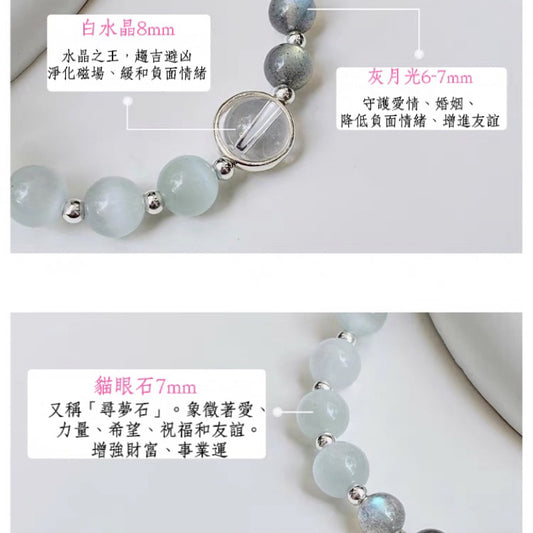 現貨 秋冬新手鍊貓眼石天然灰月光石白水晶串珠手鍊女送女友閨蜜ins風飾品生日禮物