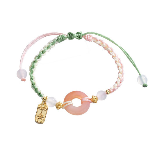 現貨 鹽源瑪瑙桃花手工編織手繩手鍊閨蜜送禮物招桃花轉運閨蜜情人節
