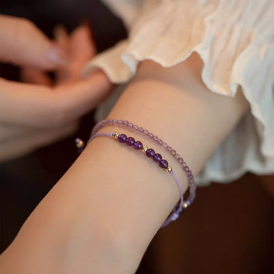 現貨天然紫水晶上岸幸運金珠小眾設計禮物鍍14k輕奢疊戴手鍊女禮物